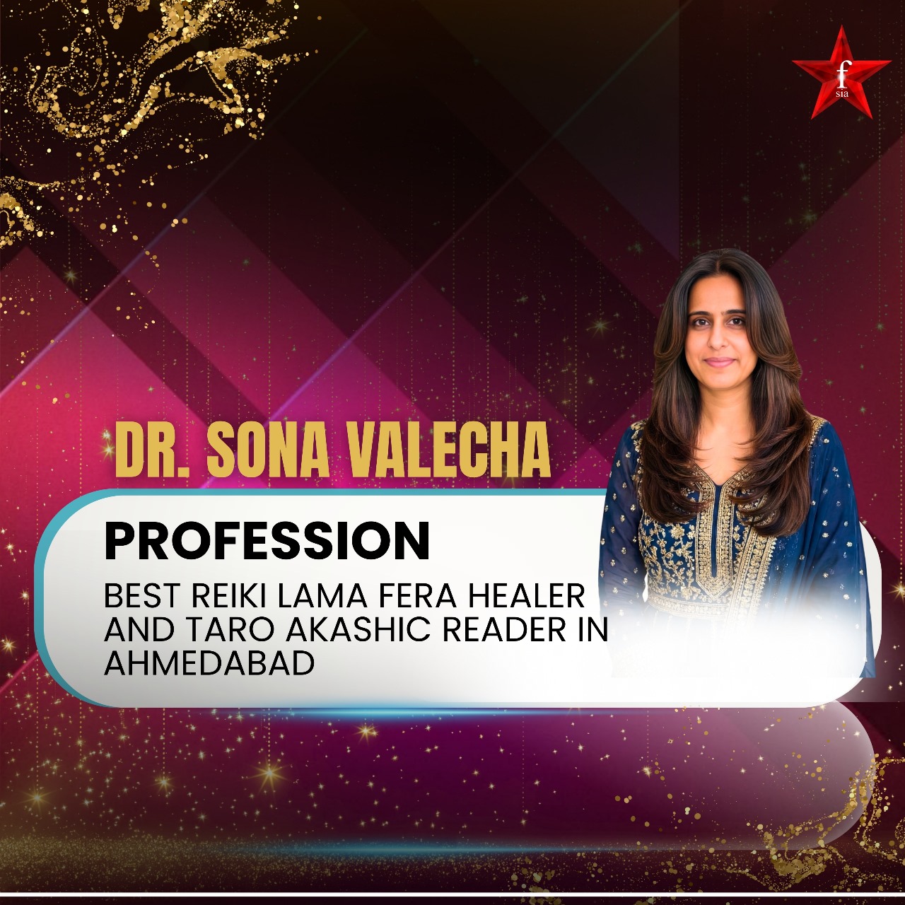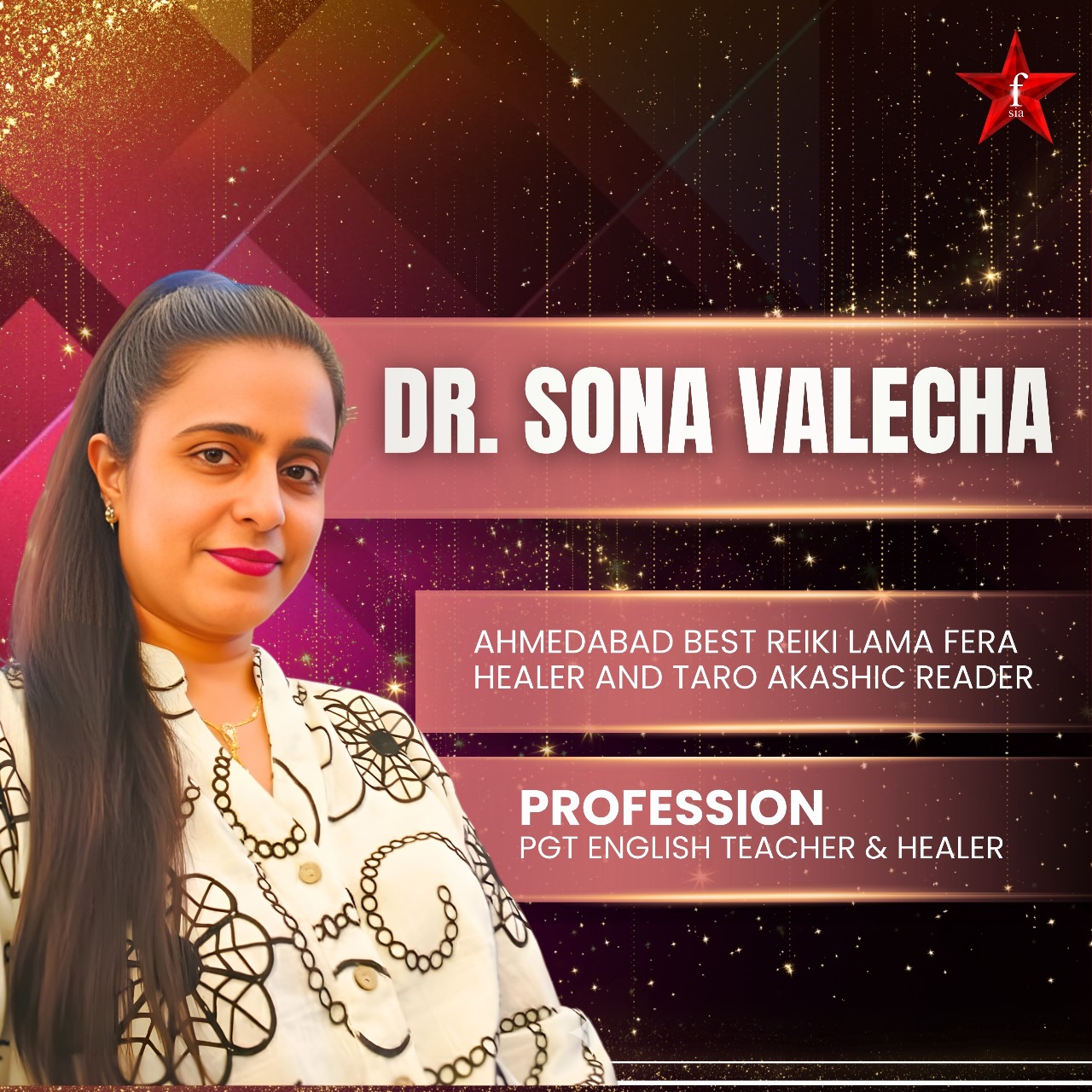 Dr. Sona Valecha is a renowned spiritual healer, Tarot Card Reader, Akashic Records Reader, and Lama Fera Grand Master based in Ahmedabad. With over 25 years of deep spiritual research and practice, she has guided more than 72,000 individuals toward clarity, emotional balance, and holistic success. Alongside her spiritual vocation, she is also a highly qualified PGT English Teacher, holding advanced academic credentials including M.A., M.Ed., and Ph.D. Her unique ability to merge spiritual wisdom with intellectual depth makes her one of the most respected multi-modality healers of her generation.