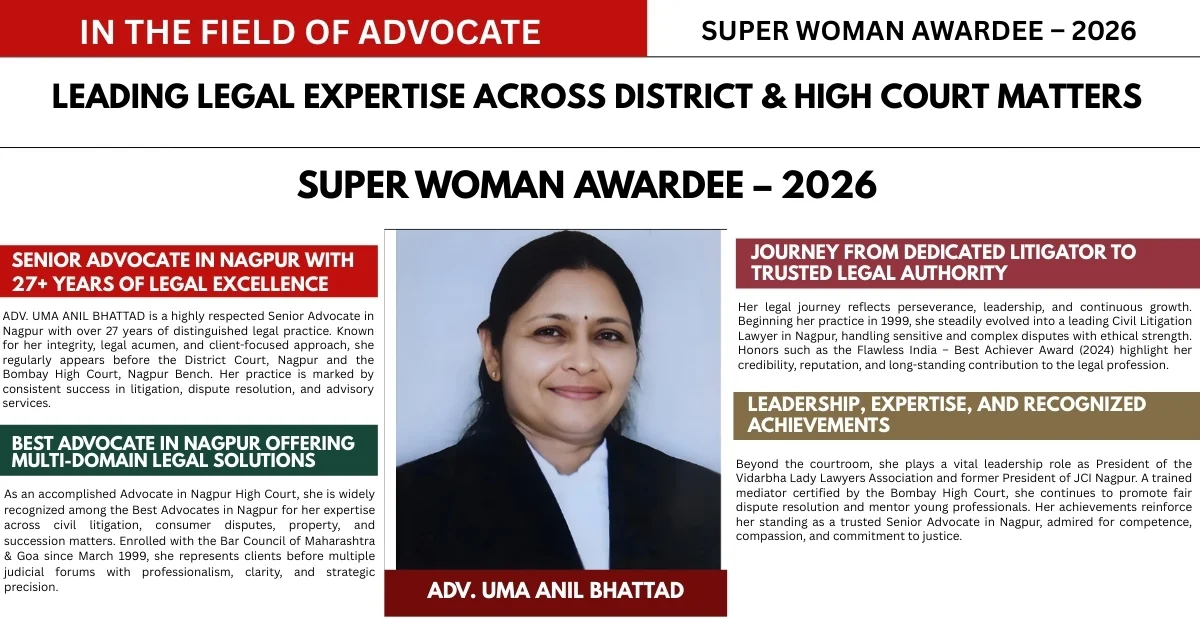 Her achievements reinforce her standing as a Senior Advocate in Nagpur whose career is built on credibility, competence, and compassion.