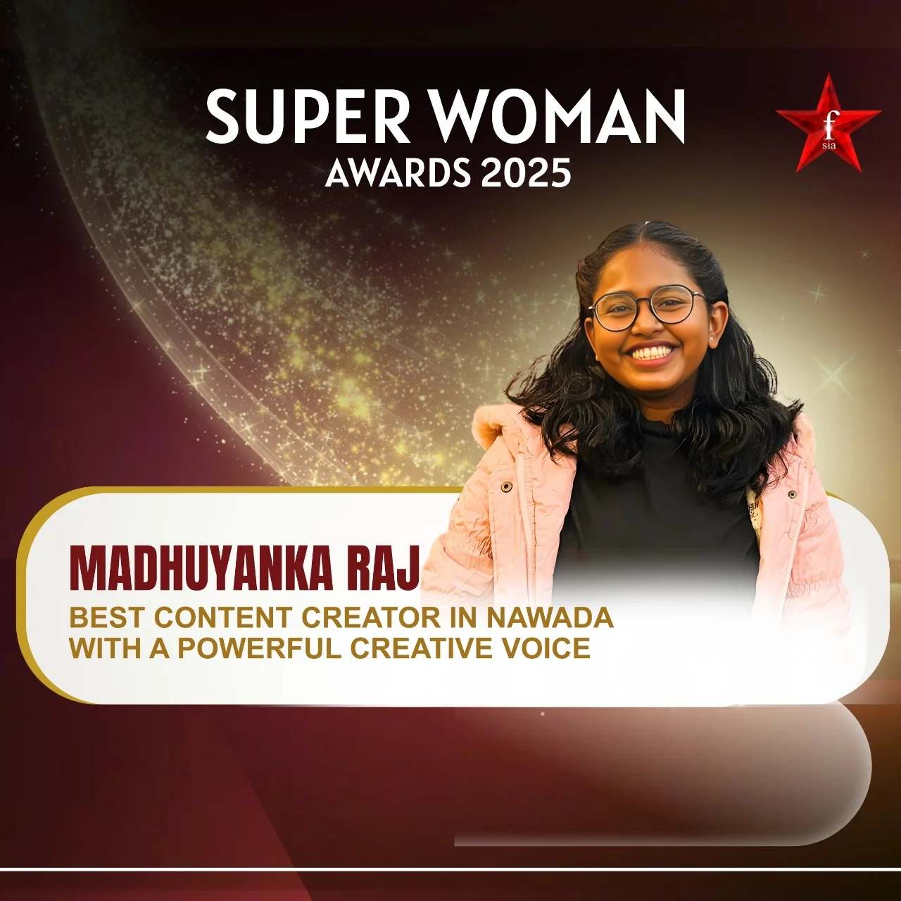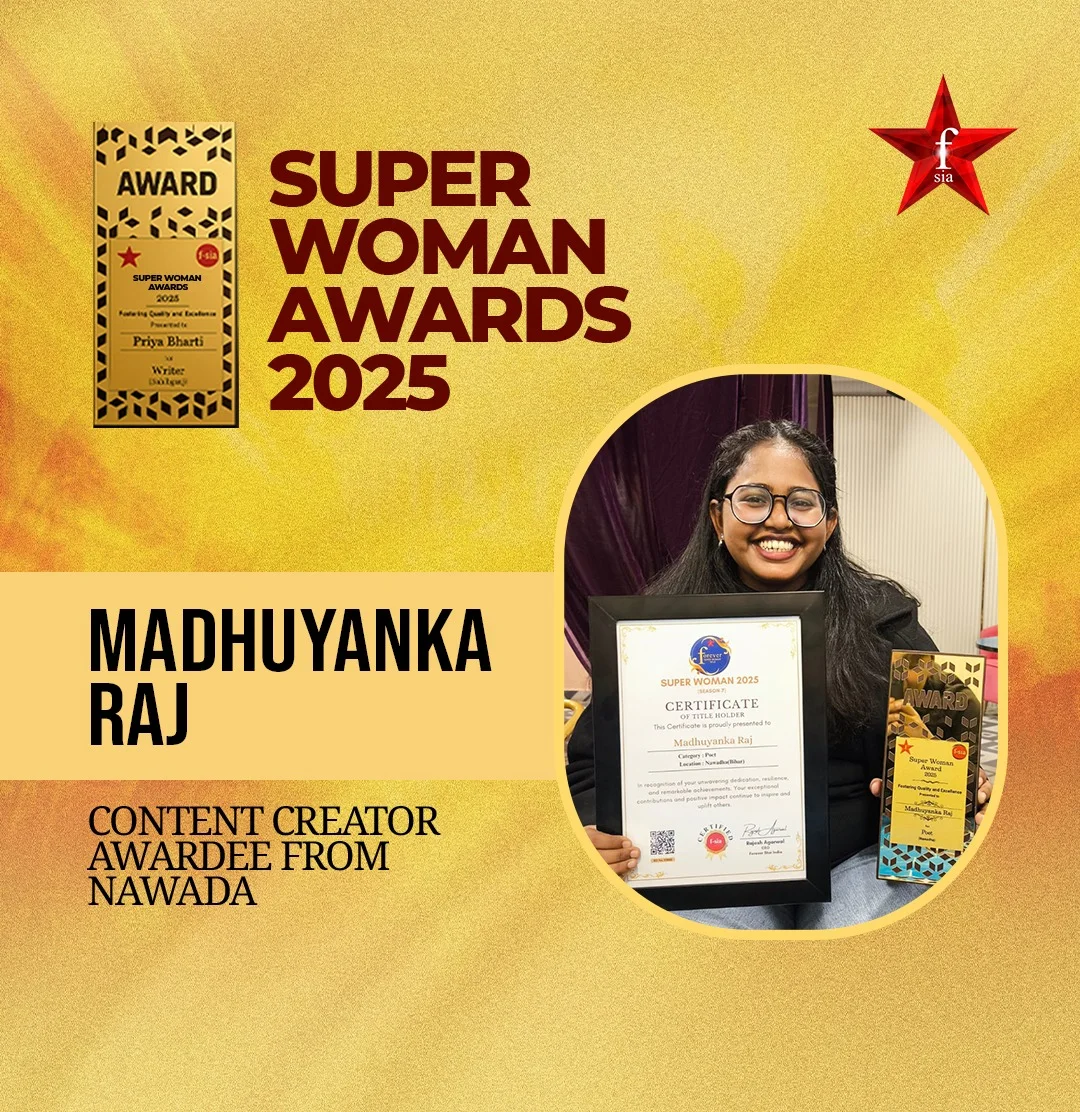 Madhuyanka Raj, recognized as the Best Content Creator in Nawada, is a talented storyteller and digital creator known for her expressive work in poetry and media. As a leading Content Creator from Nawada, she has built a strong creative identity through emotional writing, impactful visuals, and meaningful content. With three published poetry books and growing visibility, she continues to shine as a prominent Awardee in the Content Creator category from Nawada. Her recognition at the Forever Star India Awards further strengthens her position as a rising creative force, establishing her as one of the most inspiring content creation achievers in her region.