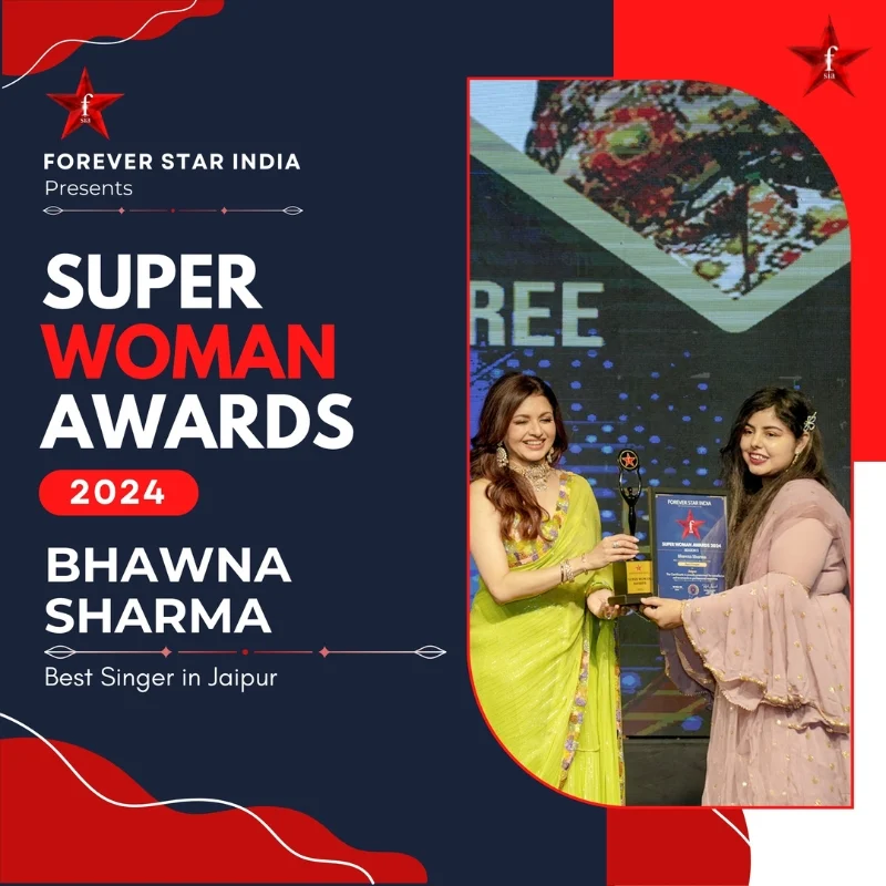 At the esteemed Super Woman 2024 Ceremony, Bhawna Sharma, one of Jaipur's most renowned musical talents, was recognized with the titles of "Best Singer in Jaipur 2024" and "Best Multilingual Singer in Jaipur." Known for her versatility, she enchants audiences with songs in Hindi, English, Korean, Japanese, Bengali, and Telugu while performing with ease in classical, contemporary, and international music genres.