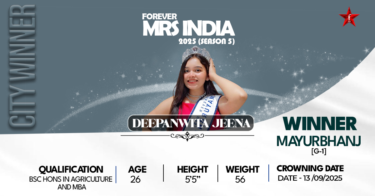 Mrs Mayurbhanj 2025 Deepanwita Jena, a 26-year-old girl of Mayurbhanj, Odisha, is a shining combination of intelligence, imaginativeness, and elegance. Holding a key position in one of the biggest banks in the city of Mumbai in the Strategy and Control Department, which she has achieved through her determination and focus in the financial sector. Outside of her professional position, she is a Bharatanatyam dancer, a sketch artist, and a national-level public speaker, demonstrating her ability to perform and communicate on a number of different platforms. As one with her personality may be expected to have, she has a tall and poised air which bespeaks her sense of elegance, discipline, and resilience through which she can balance between many roles with an equal degree of passion. Having been brought up by scholarly parents who brought together the philosophy of equality and self-belief into her life, Deepanwita was raised with exploring purposefulness and a vision of contributing to change. Her experience shows strength and the power to break stereotypes, and the message is that women should learn to be unique and that insecurities should become their strengths. As the Winner of Mrs Mayurbhanj 2025 at Forever Star India, she comes not only with beauty but a strong statement of empowerment and authenticity. To Deepanwita, beauty means confidence and character, and she tries to make women Beautiful in their own ways and with their inner strength.