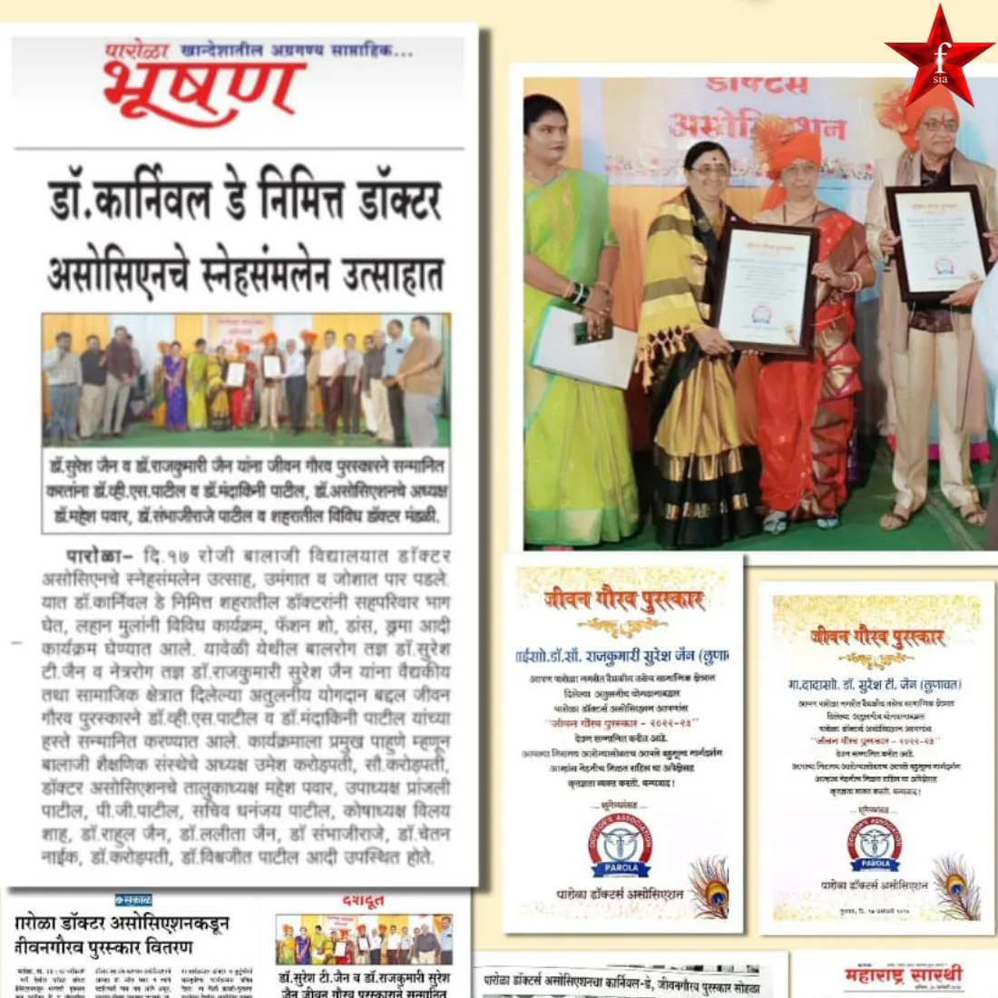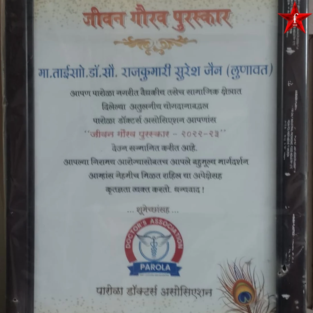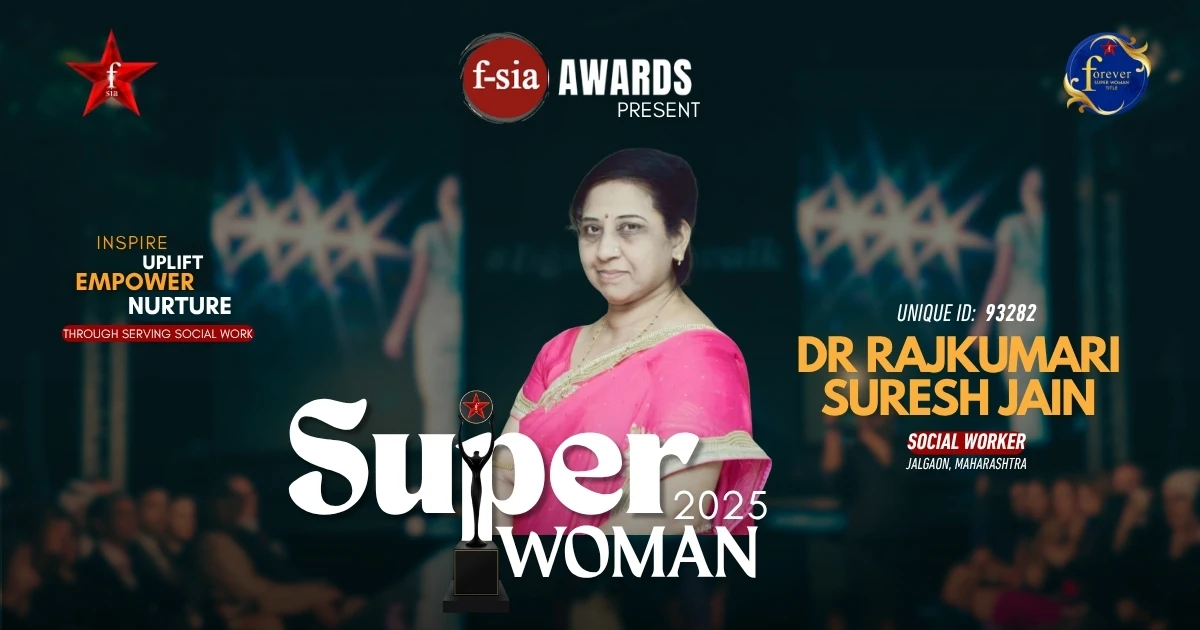Dr. Rajkumari Suresh Jain is a distinguished doctor and dedicated social worker in Jalgaon, Maharashtra, known for her unwavering commitment to healthcare, social service, and humanitarian causes. With a remarkable career spanning over four decades, she has led numerous initiatives focused on public health awareness, organ donation, and child nutrition. Honored with more than 60 national and state-level awards, Dr. Rajkumari Suresh Jain stands among the best social workers in Jalgaon, Maharashtra, and continues to inspire society through her compassion, service, and leadership. Recognized as a Super Woman 2025 by Forever Star India Awards, her life is a shining example of service beyond self.