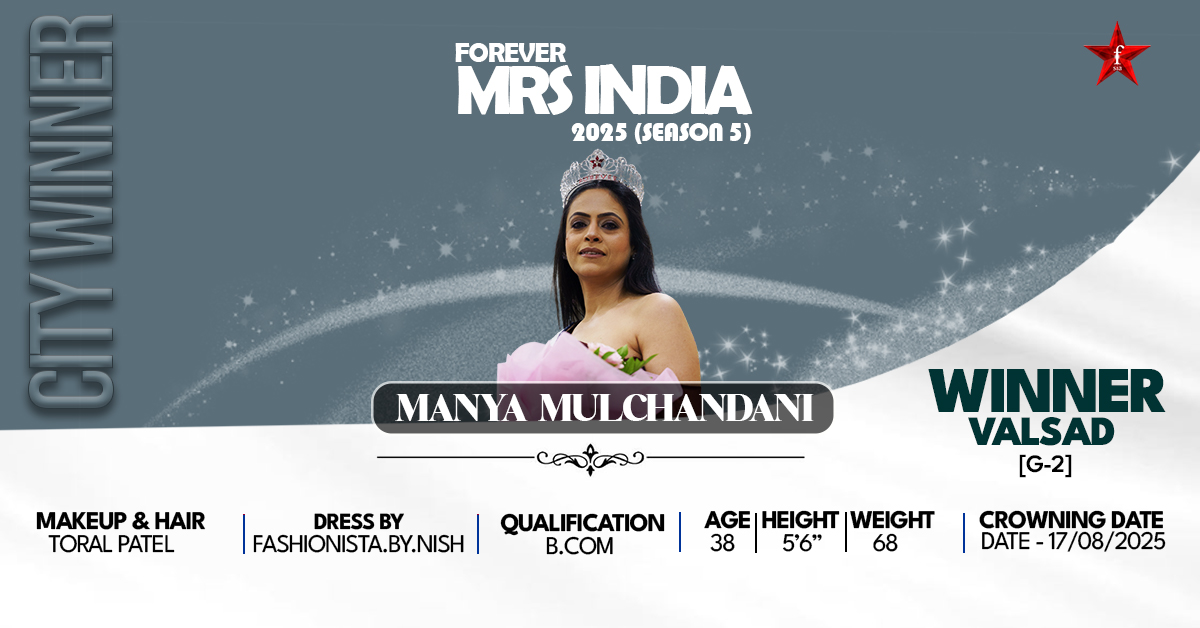 The moment of change was after she decided to enter the pageant world with Forever Mrs. India 2025. Obtaining the Valsad title was not just an individual accomplishment, but it was a time of change. Her dream became her reality, and the admiration boosted not only her self, but the whole family, who now got a certain sense of respect and admiration in her neighborhood. Today, Manya has become a sign of power and transformation and reminds women of how life can be lived with dignity in all the various roles we play- of a mother, a teacher, and now a crown holder.