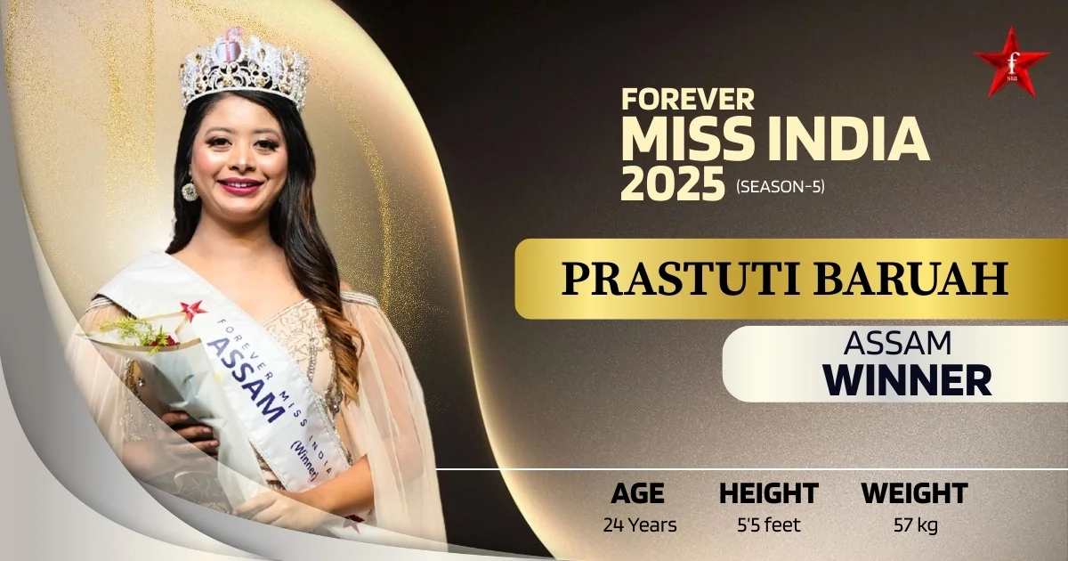 Prastuti Baruah is the proud winner of Miss Assam 2025, crowned at the Miss India Grand Finale. Hailing from Guwahati, Assam, she is a talented and confident young personality recognized as a rising female lifestyle model. Known for her elegance, charisma, and expressive presence, she represents the spirit of modern Assamese youth who blend ambition, culture, and confidence on a national platform.