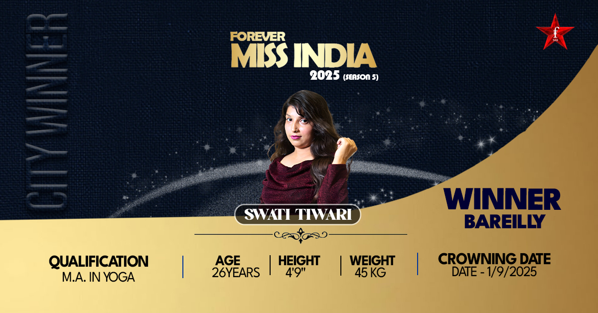 She achieved a significant career milestone by winning a Gold Medal at the National Level in Yoga as a result of her persistent practice and self-control. Swati never gave up on her dreams, even though her height presented obstacles. Her love of dancing and acting led her to participate in artistic endeavors, such as a web series. She saw the Forever Miss India (FSIA) platform as the ideal chance to realize her lifelong ambition of becoming well-known and renowned. In addition to being a personal accomplishment, winning the Miss Bareilly 2025 title is a testament to her fortitude, self-assurance, and perseverance.