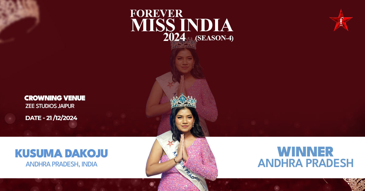 Kusuma Dakoju, the 2024 Andhra Pradesh winner of Forever Miss India, is a fearless, devoted, and inspirational woman. She uses her position to advocate for women's empowerment and self-belief, representing her state with dignity, poise, and confidence.