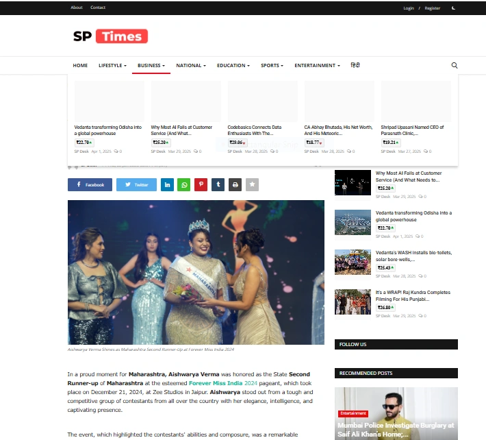 Miss Maharashtra 2024 (2nd Runner Up) in Forever Miss India 2024 is Prof. Aishwarya Verma, a 25-year-old from Nagpur, Maharashtra. She is a committed professor who inspires young women by fusing intelligence, beauty, and empowerment.
