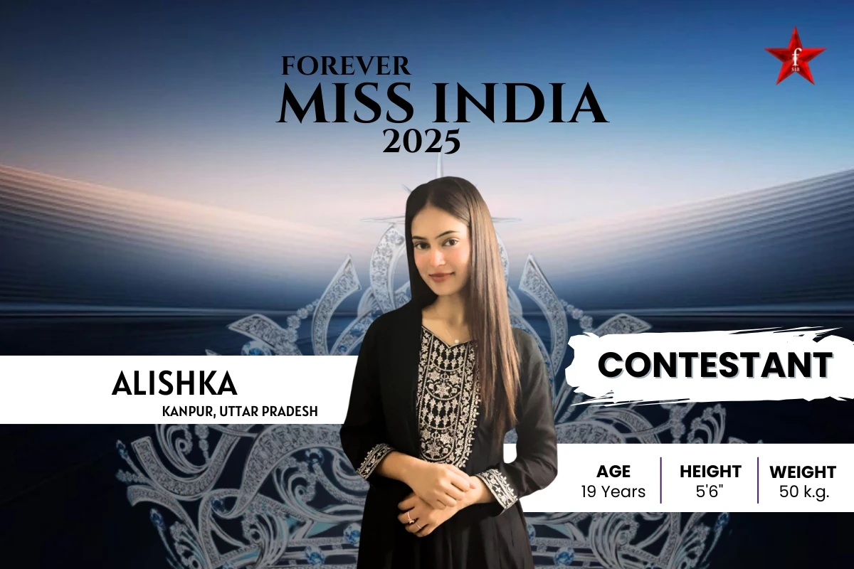As the official Forever Miss India 2025 contestant, Alishka is a self-assured and inspirational young woman who proudly represents Kanpur Nagar, Uttar Pradesh. She is currently 19 years old and pursuing a Bachelor of Science while juggling her love of modeling and self-expression with her studies. She has loved modeling since she was a young child, but she put her dream on hold for a while because of a lack of support. She was inspired to pursue her goals and stand in for all girls whose dreams are thwarted by fear, familial pressure, or social expectations after being given the chance to compete for Forever Miss India 2025. She wants to serve as a voice for these unspoken aspirations, demonstrating that anything is achievable with tenacity, commitment, and faith in oneself.