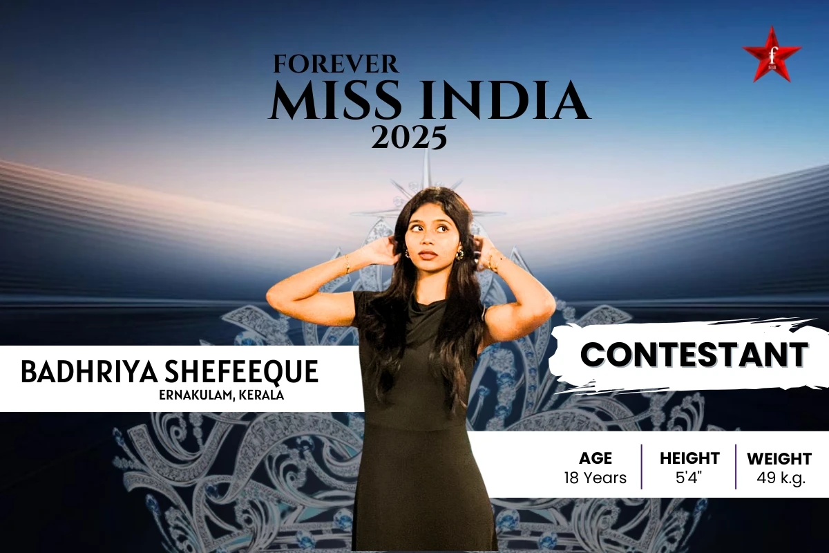 Badhriya Shefeeque, a confident and determined Miss India 2025 Contestant from Ernakulam, Kerala, beautifully balances intellect and creativity. At just 18 years old, she is pursuing her first year in Business Management Studies at St. Teresa’s College, Ernakulam, where she continues to cultivate her passion for learning and leadership. Alongside academics, Badhriya believes in maintaining a healthy and balanced lifestyle. Her love for working out and reading reflects her discipline, curiosity, and commitment to self-improvement. She views fitness not only as a physical pursuit but also as a way to build mental strength and confidence.