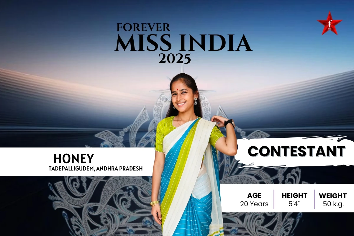 Honey, proudly representing Tadepalligudem, is a 20-year-old Miss India 2025 Contestant who beautifully balances intellect and passion. Currently pursuing her MBBS first year in Hyderabad, she dreams of making a mark not only in the world of medicine but also in the world of fashion and acting. Standing tall at 5’4” and weighing 50 kg, Honey carries herself with grace, charm, and confidence qualities that define a true fashion model in Tadepalligudem. Her journey into modeling began with a deep desire to express herself creatively and inspire other young women to step beyond limitations. As an aspiring model in Tadepalligudem, Honey aims to show that ambition has no boundaries one can pursue education and artistic passion simultaneously. Through the Forever Miss India 2025 platform, Honey wishes to encourage every girl to believe in her inner strength and participate in opportunities that bring out her best. Her message is simple yet powerful “Courage and confidence can turn dreams into destiny.”