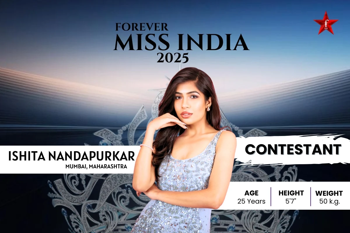 An official Miss India 2025 contestant from Mumbai, Maharashtra, is 25-year-old architect Ar. Ishita Nandapurkar, who currently represents Mumbai. Her foundation was creativity, which helped her grow from drawing as a child to designing actual structures. She also excelled as a volleyball player in college. In 2023, Ishita entered pageantry after being inspired by Priyanka Chopra, where she gained courage, resiliency, and teamwork. Standing resolutely on the Miss India stage today, she embraces not only the crown but also the bigger dream her heart has in mind.