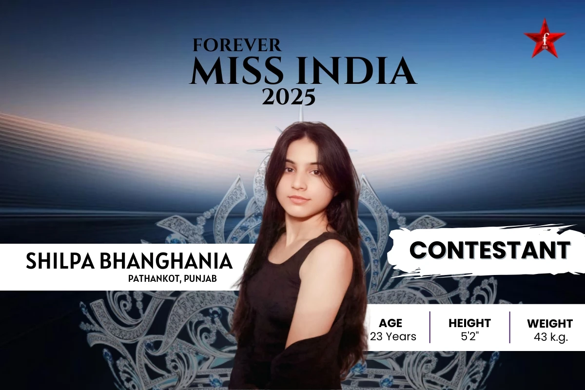 An inspirational young woman and official contestant for Forever Miss India 2025 is Shilpa Bhanghania, who is from the culturally thriving city of Pathankot, Punjab. As evidence of her dedication to academic success and her embrace of her love of creativity and self-expression, she is presently working toward her Master's degree in computer science.
