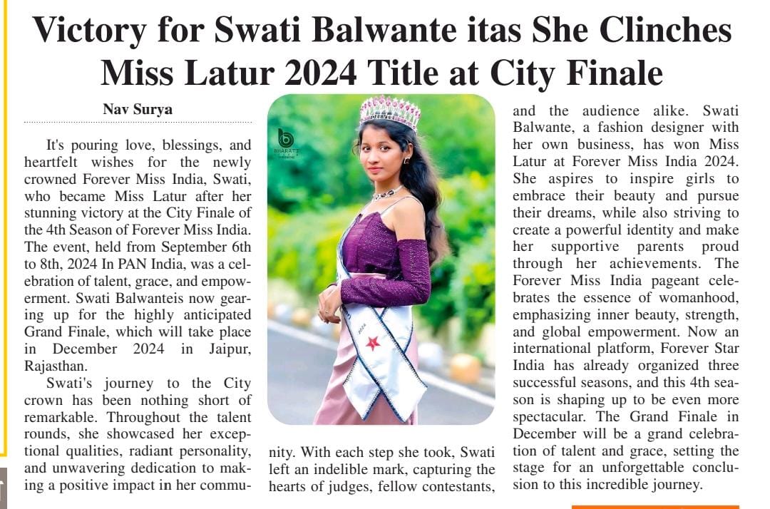 Swati Balwante, Miss Latur 2024, is a business and fashion designing graduate who works hard with patience and dedication and has her own venture, demonstrating that passion results in achievement.