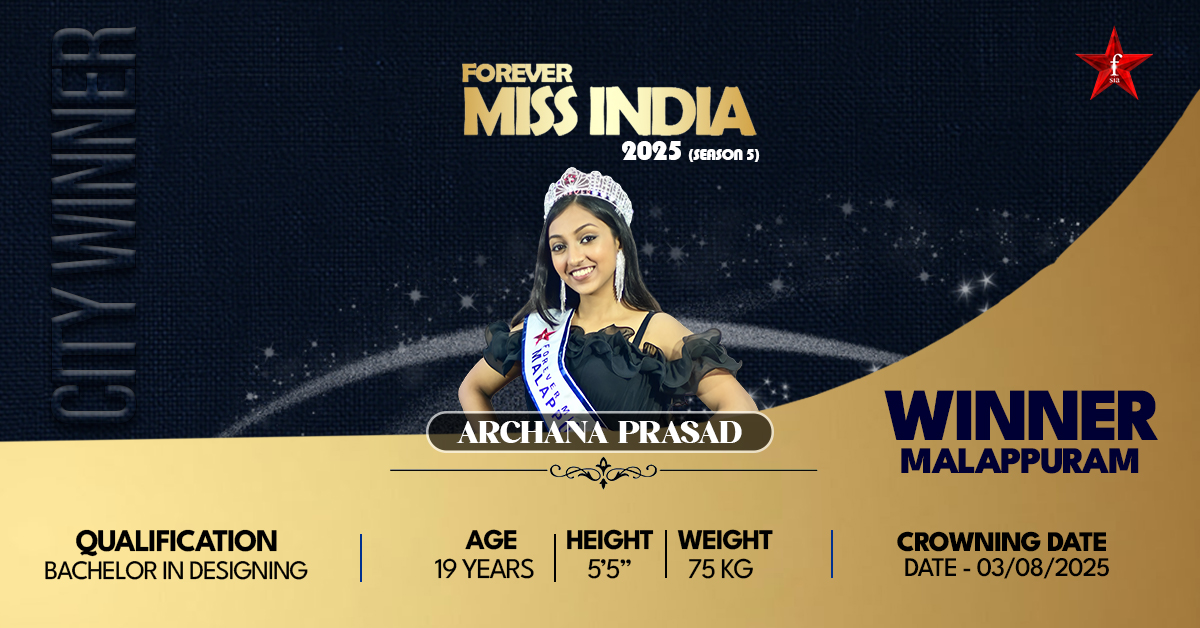 Miss Malappuram 2025 Archana Prasad, a stunning young lady of 19 years old who hails from the Malappuram district of Kerala, is a City Winner at the FSIA Miss India Contest 2025. Despite having been 18 years in the Sultanate of Oman, Archana is completely embedded in the traditions, values, and multi-colored culture rich in Kerala. Famous for her multi-talents, she has had a successful stunt, being a dancer, singer, actor, and artist, and is a serious student Learning Fashion Design at NIFT Kannur. From an early age, Archana has embodied creativity, discipline, and passion. Trained in Bharatnatyam, Carnatic music, Kuchipudi, Mohiniyattam, and various folk dances, she has showcased her talent on prestigious platforms such as the Indian Social Club in Oman. Miss Malappuram 2025 winner also delved into theatre, which saw her take up key roles in renowned performances that added gravity to her self-assurance and creativity. What makes Archana so amazing is not just her skill but her heart of gold, and through her foundation, Saaisha, she has created a movement of crochet cotton knockers and beanies to give to patients undergoing cancer treatments. With her vibrant talent, intelligence, and compassionate nature, Archana will continue to inspire others and serve as a remarkable ambassador of FSIA.