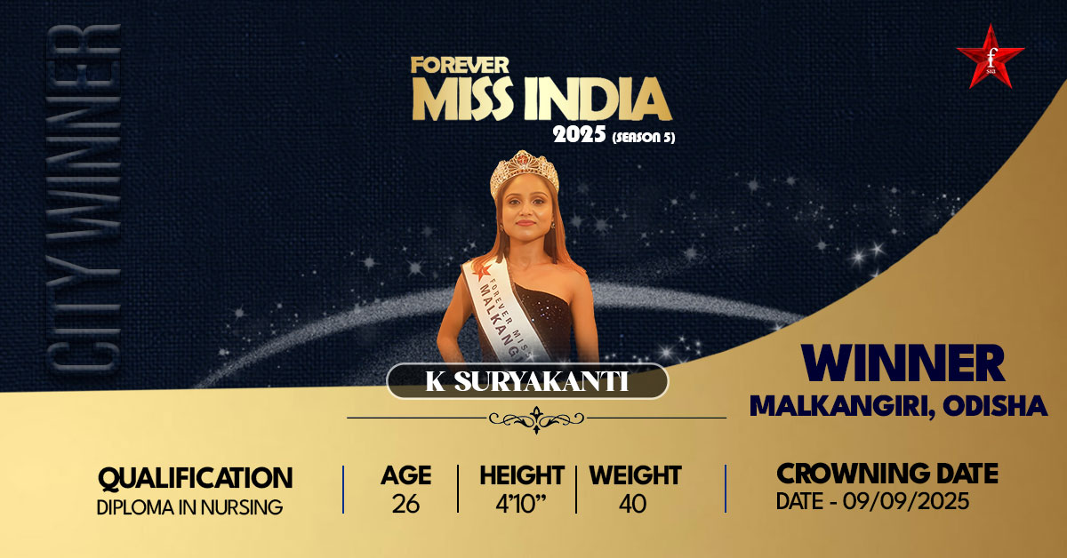Suryakanti’s journey has been filled with perseverance, passion, and steady progress. Growing up in Malkangiri, she learned the values of hard work, discipline, and self-belief. Despite her petite height, she always dreamed of walking the stage and proving her talent. Balancing her nursing profession and pageant preparation, she worked tirelessly to improve her confidence, presence, and performance. Winning the title of Miss Malkangiri 2025 has been a beautiful milestone in her life. For her, FSIA is not only a competition but a platform where she can prove that dreams are achievable with courage and determination. She continues striving for excellence with the hope of winning the grand finale as well.