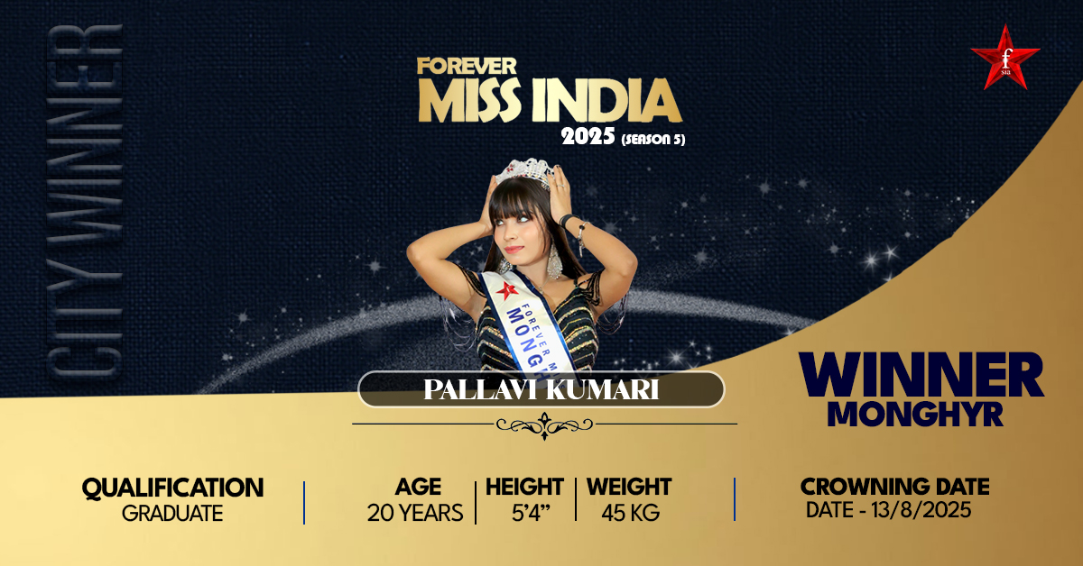 Miss Monghyr 2025 Pallavi Kumari, a 20-year-old, multi-talented artist, hailing from Monghyr (Yoga Nagri), Bihar, is a proud winner on the Forever Miss India 2025 platform. She is a versatile actress, model, dancer, and content creator, and reflects a wonderful combination of cultural traditions and modern ambitions. Having trained in Bihari folk dance and being an avid performer, she has performed her talents in the district, nationwide, and in reality shows, receiving commendation for her commitment to the performing arts. Pallavi is a dynamic individual whose love for acting, dance, and modeling is evident in her personality, whereas her creation of social media content has allowed her to inspire more people. Her parents and friends believe strongly in her, so she believes she is powerful with confidence and self-expression. Being a culture ambassador of her state, Bihar, Pallavi dreams of leaving her footprint on the national and international front as a regenerator of the message that there is only the beauty of confidence and inner strength.