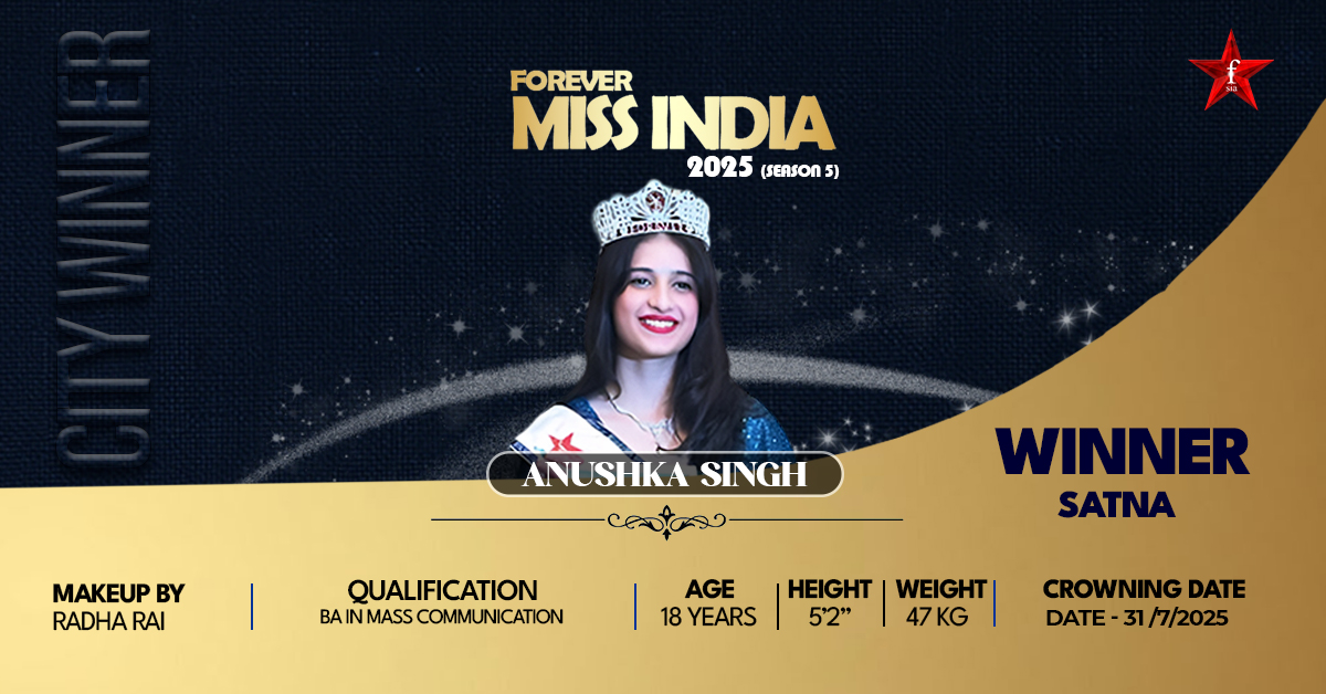 Miss Satna 2025 Anushka Singh is an 18-year-old, exciting, and multi-talented girl from Satna, who has made herself a part of the prestigious Forever Star India Awards as the lucky winner of FSIA. Her path to accomplishment can be discussed as an ideal mixture of beauty, intelligence, and persistence. She has entered debate tournaments to represent her state, showing her eloquence and ability to lead, and dance, all of which as hobbies that also reflect the nature of her disciplined yet artistic nature. In addition to her achievements, Anushka considers this crown an assignment. She also dreams of becoming a role model to young women in the country and being able to encourage them to be different and have their dreams, and believe in their abilities. She is a great believer in empowering women, and with her title, she hopes to not only celebrate her success but also be able to make a difference with the title she has won. Her victory is not only personal in glory, but it is a message of resilience, confidence, and the faith that with hard work, no dream is too large to be realized.