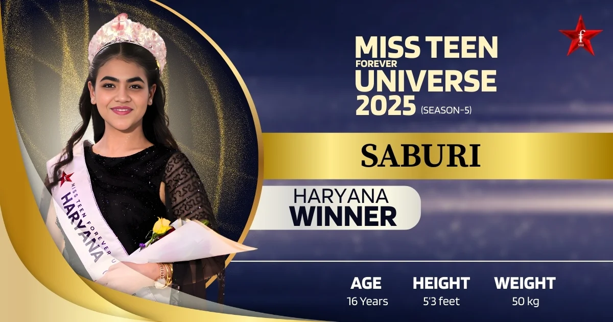 Saburi, crowned Miss Teen Forever Universe Haryana 2025, is the first girl from Haryana to win this prestigious title. Recognized as a rising promotional model in Haryana, she stands out for her elegance, discipline, and purpose-driven leadership. Saburi believes in inner strength, alignment, and service, and uses her platform to inspire empowerment, compassion, and clarity. As the Miss Teen Haryana Winner, she represents a new generation of leaders who combine intellect, creativity, and social responsibility, redefining what it means to be a modern teen role model.
