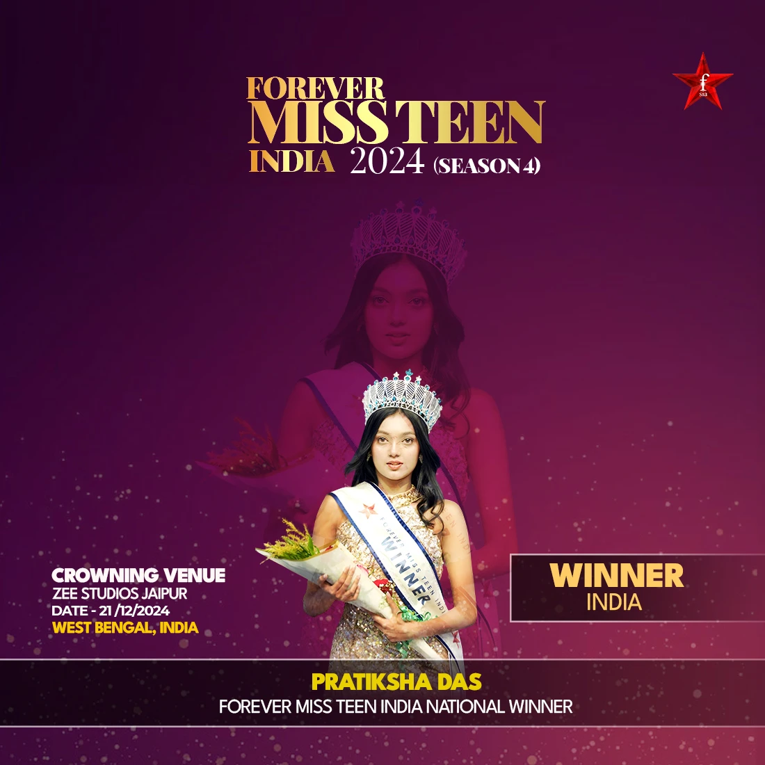 A Young Achiever with Unwavering Determination Pratiksha Das, a 16-year-old student from Kolkata, has left an indelible mark in the pageant world by winning the coveted title of Miss Teen India 2024. Her rags-to-riches story is a reflection of her ambition, determination, and never-say-die attitude to succeed, and she is a true inspiration for youth everywhere.