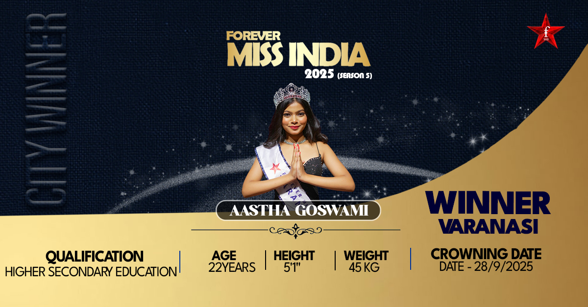 Aastha Goswami, Miss Varanasi 2025, is a professional Kathak dancer, dance teacher, and emerging model with a passion for both classical and western dance forms. Representing Varanasi at the prestigious Forever Star India pageant, she embodies grace, dedication, and versatility. Her journey reflects a perfect blend of artistic excellence and ambition, proving that passion, discipline, and hard work can transform dreams into achievements. Aastha is committed to using her platform to inspire young women to pursue their dreams in dance, modeling, and self-expression, no matter the challenges.