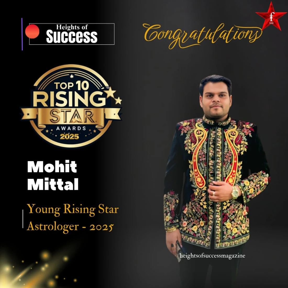 Mohit Mittal is a Sirsa-based, award-winning astrologer and numerologist of Haryana. Having been awarded the Young Rising Star Astrologer 2025, he has been assisting others come into alignment with heavenly forces using a special combination of Vedic astrology and numerology.