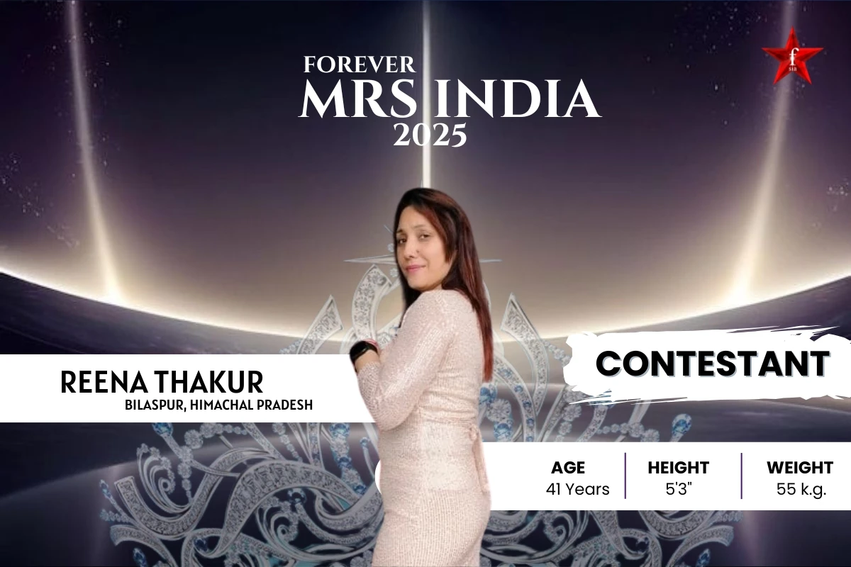 Bilaspur, Himachal Pradesh, is proudly represented by Reena Thakur, an official contestant of Forever Mrs. India 2025, on one of the most prominent beauty pageants in India. Reena is a fashion model, influencer, and digital creator who received her B.Sc. in fashion design from Hamirpur University (INIFD). She is a proud mother of two daughters, married to Mr. Sanjay Thakur, and a living example of empowerment, grace, and strength. Her goal is to encourage women to celebrate their uniqueness with pride and confidence and to go after their dreams no matter what.