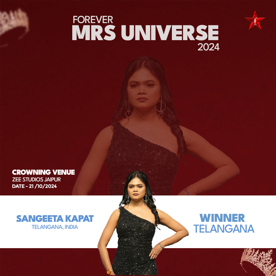 Sangeeta Kapat, Mrs. Universe Telangana 2024, is a tough single mother, marketing manager for pharmaceuticals, and M.Sc. in Biotechnology. She inspires by virtue of her strength, self-improvement, and commitment to empowering women.