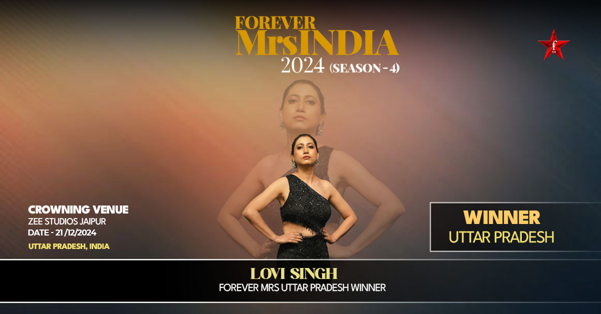 The proud winner of Mrs. Uttar Pradesh 2024 at the Forever Mrs. India 2024 Grand Finale is Lovi Singh, who hails from Bulandshahr, Uttar Pradesh. She encourages women to follow their dreams with bravery and confidence because of her grace, strength, and unwavering determination.