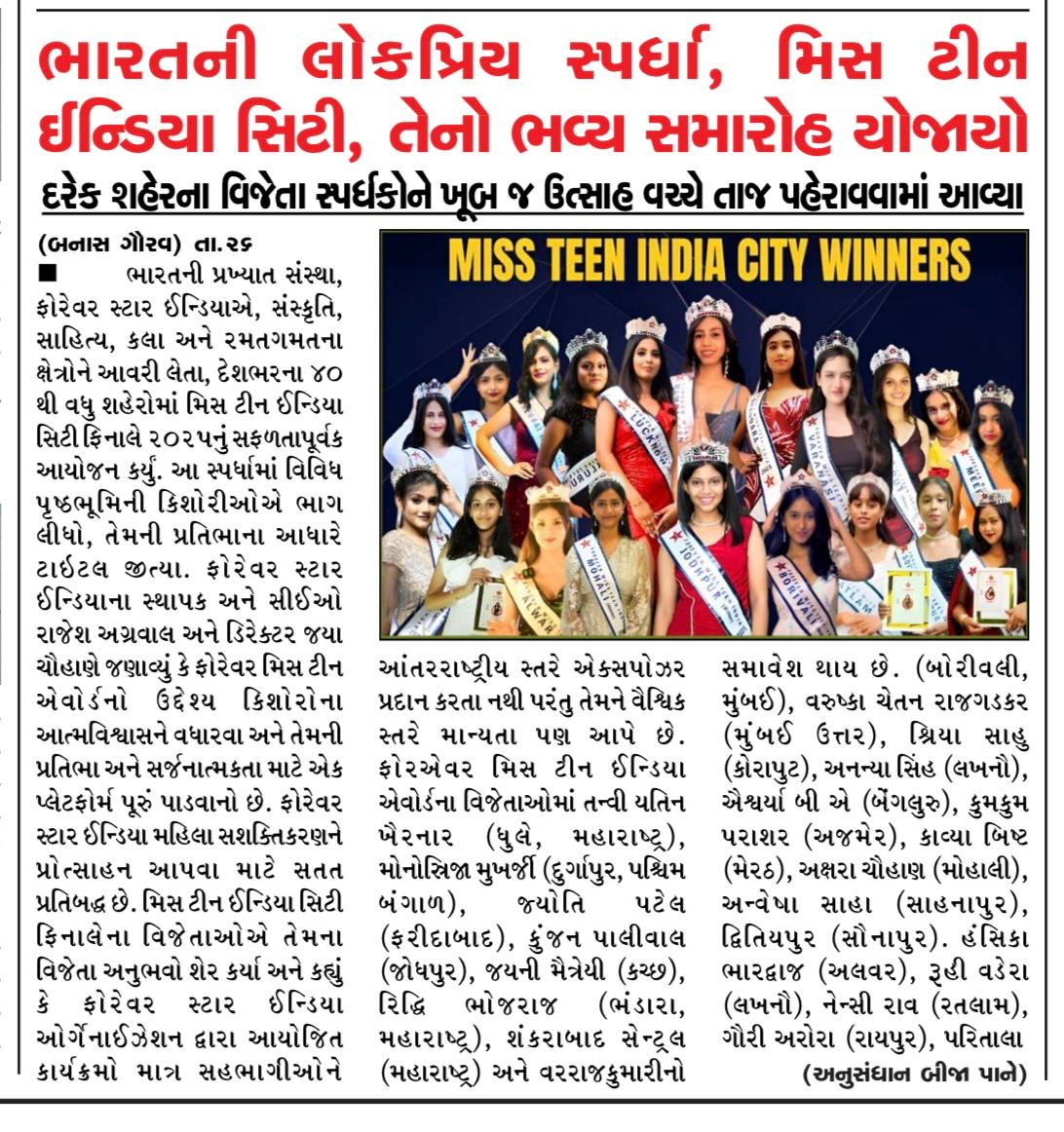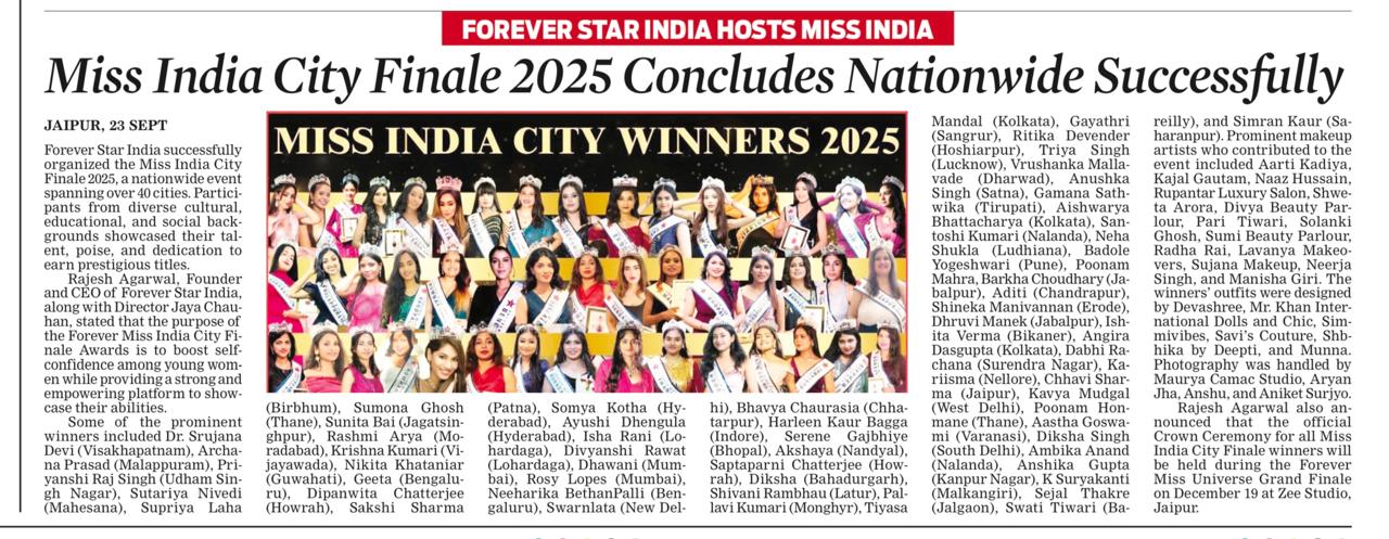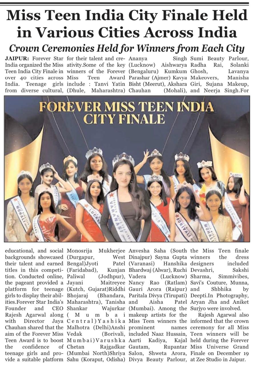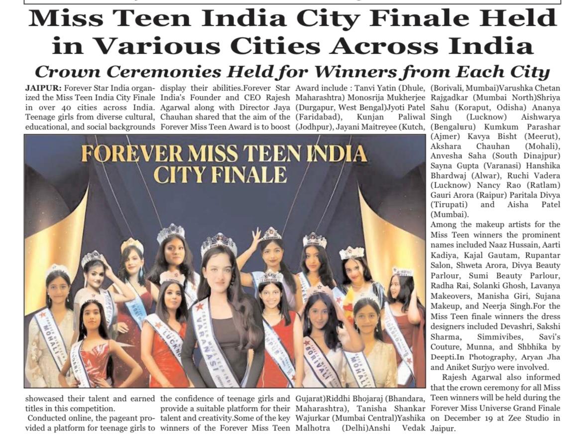 नेशनल लेवल ब्यूटी पेजेन्ट फॉरएवर मिस, मिसेज एंड टीन इंडिया 2023 सीजन 3 की स्टेट व नेशनल लेवल विनर्स का मीडिया इंटरेक्शन सेशन