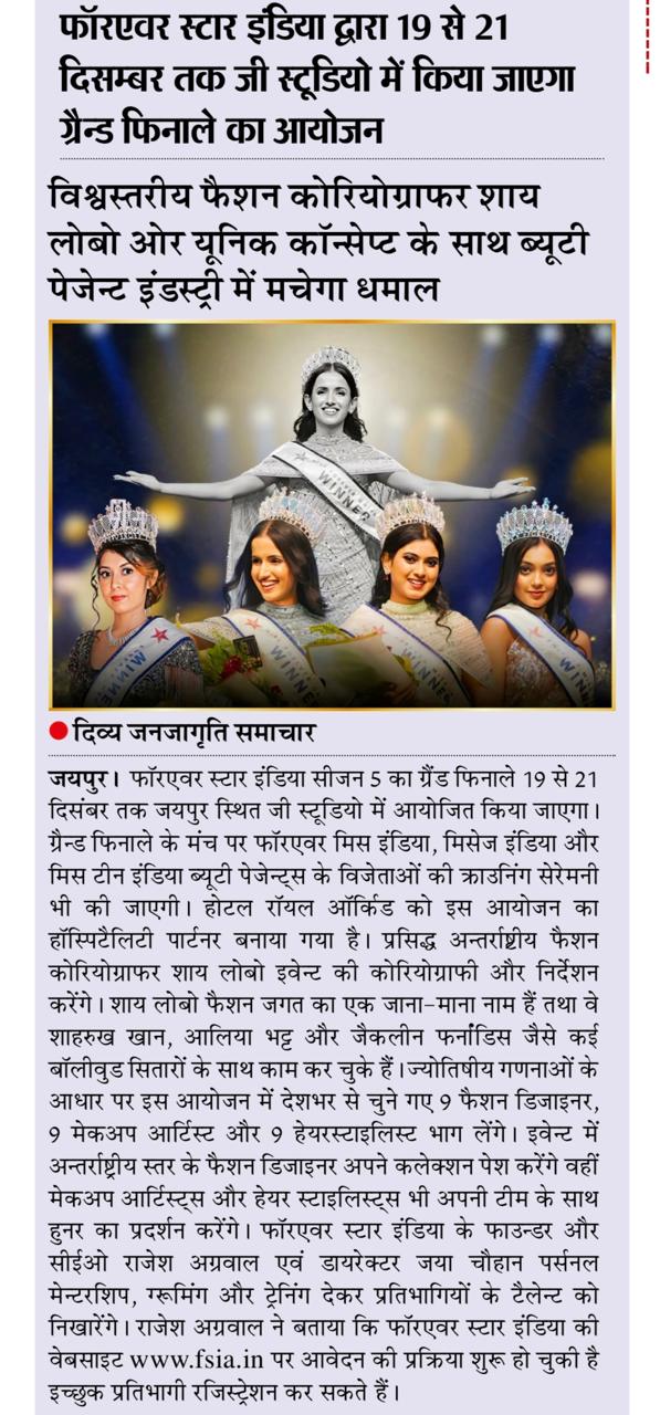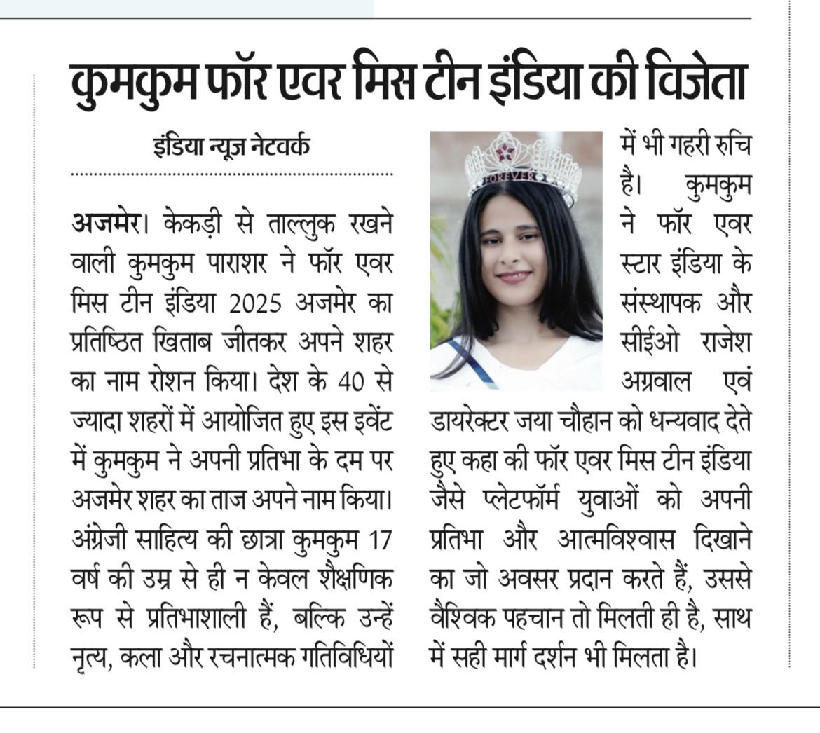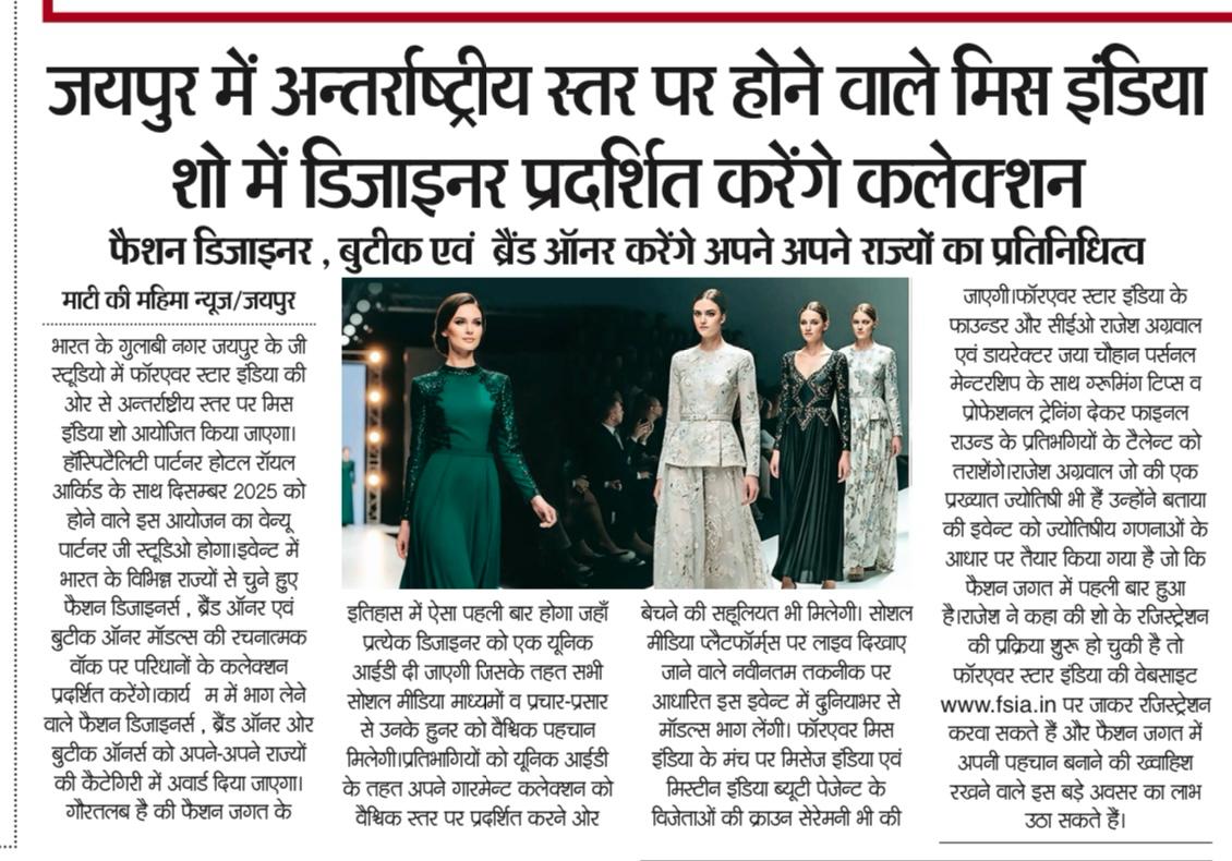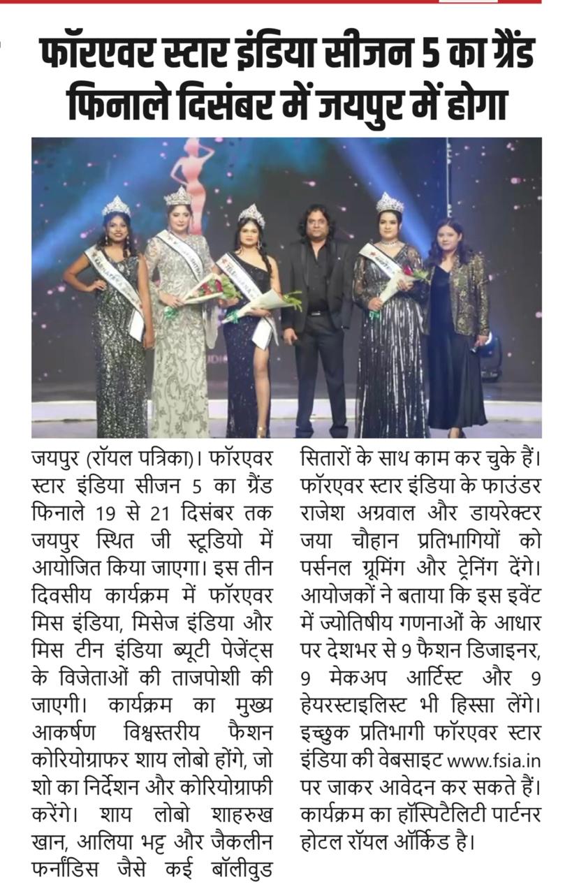 नेशनल लेवल ब्यूटी पेजेन्ट फॉरएवर मिस, मिसेज एंड टीन इंडिया 2023 सीजन 3 की स्टेट व नेशनल लेवल विनर्स का मीडिया इंटरेक्शन सेशन