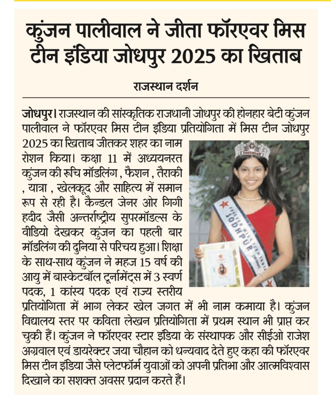 Sonakshi Mohapatra has beed crowned as Runner Up of Forever Miss Teen India 2024