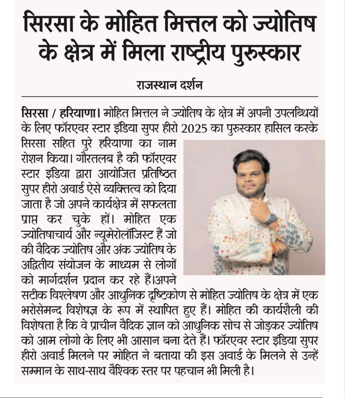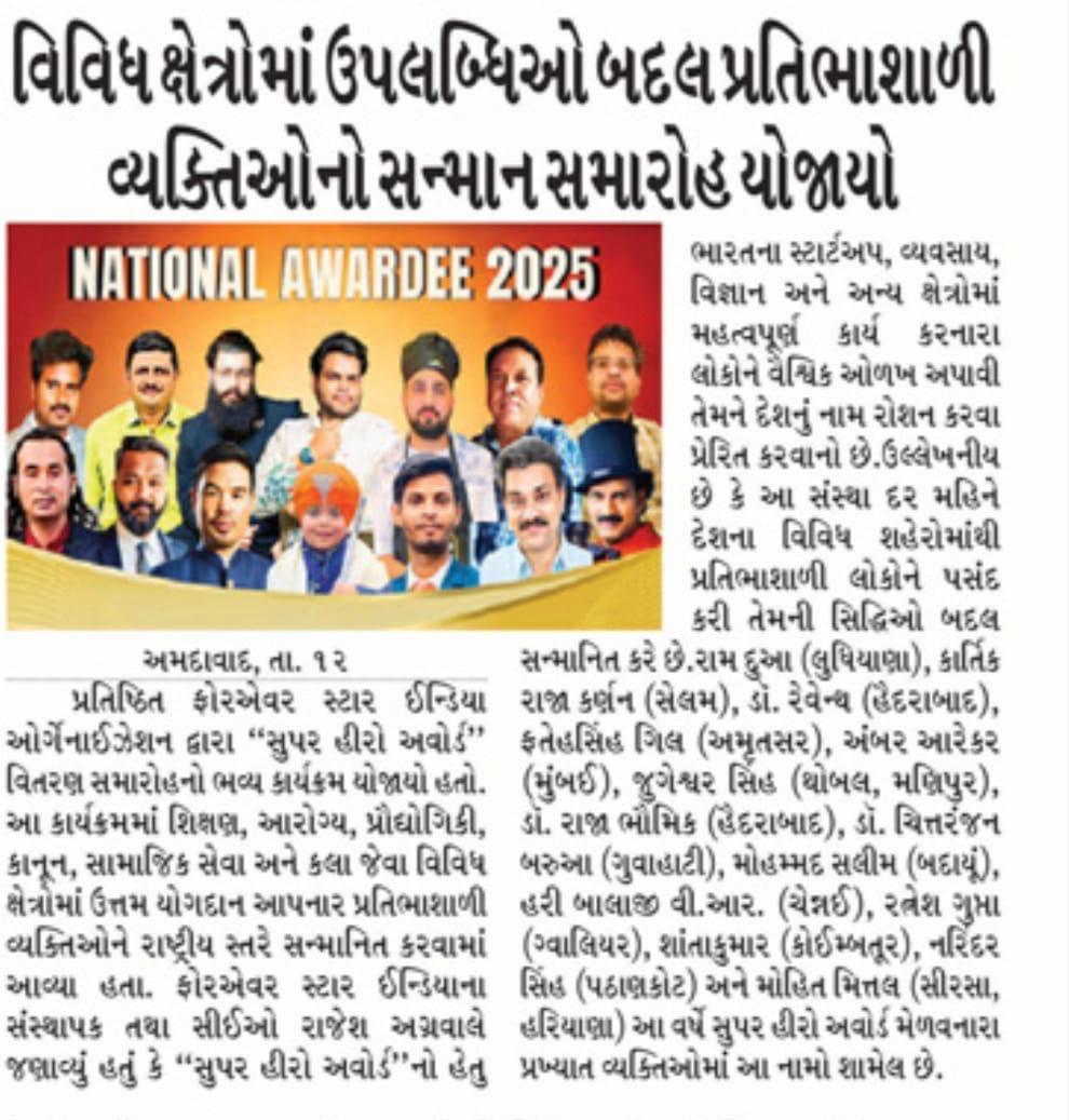 Shivendra Pachauri awarded in "Health and Fitness" Category in Super Hero Awards 2024