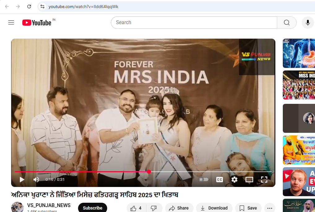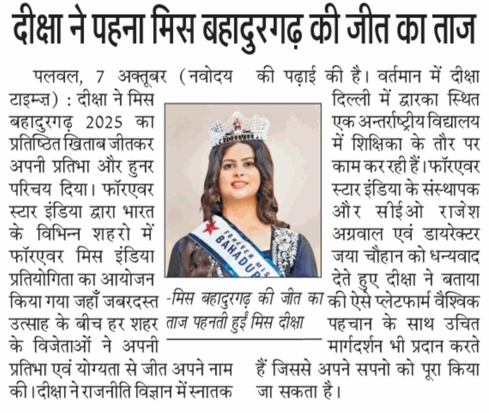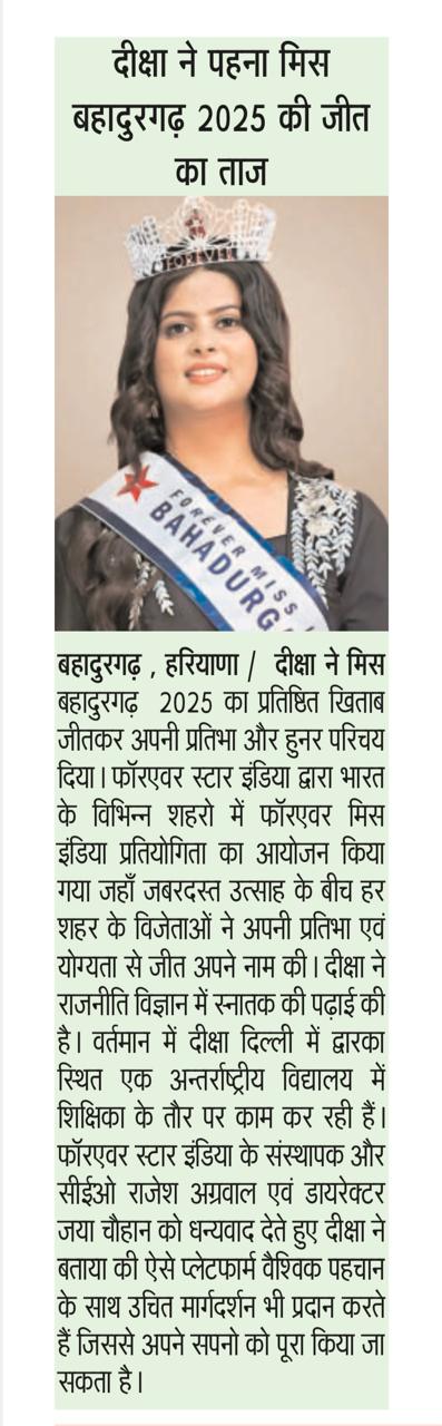 Manvika has won Miss Haryana 2024 Title in Forever Miss India 2024 Beauty Contest