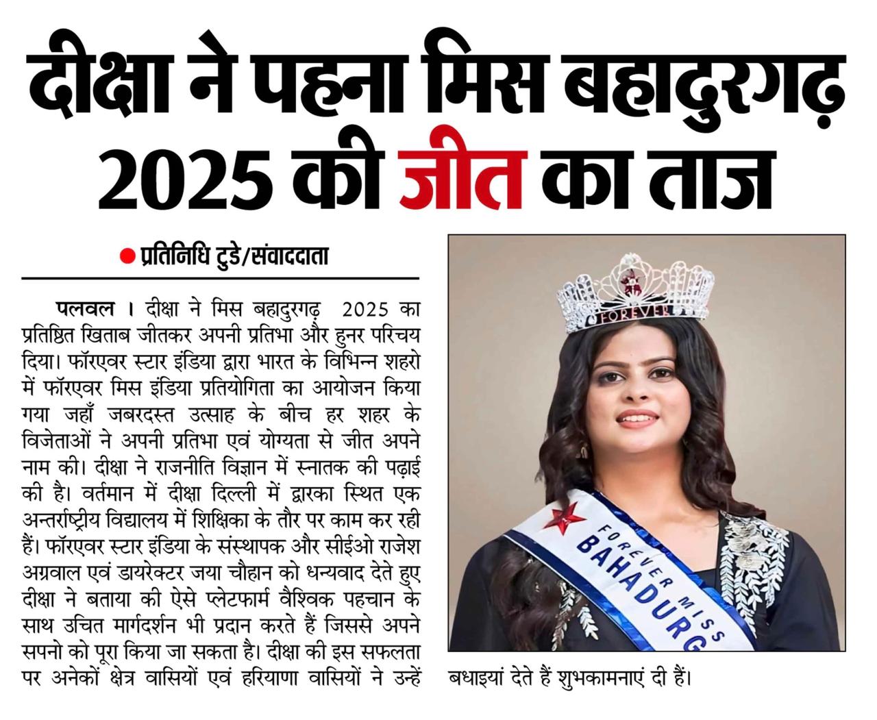 Manvika Mehra entitled as Forever Miss Haryana 2024