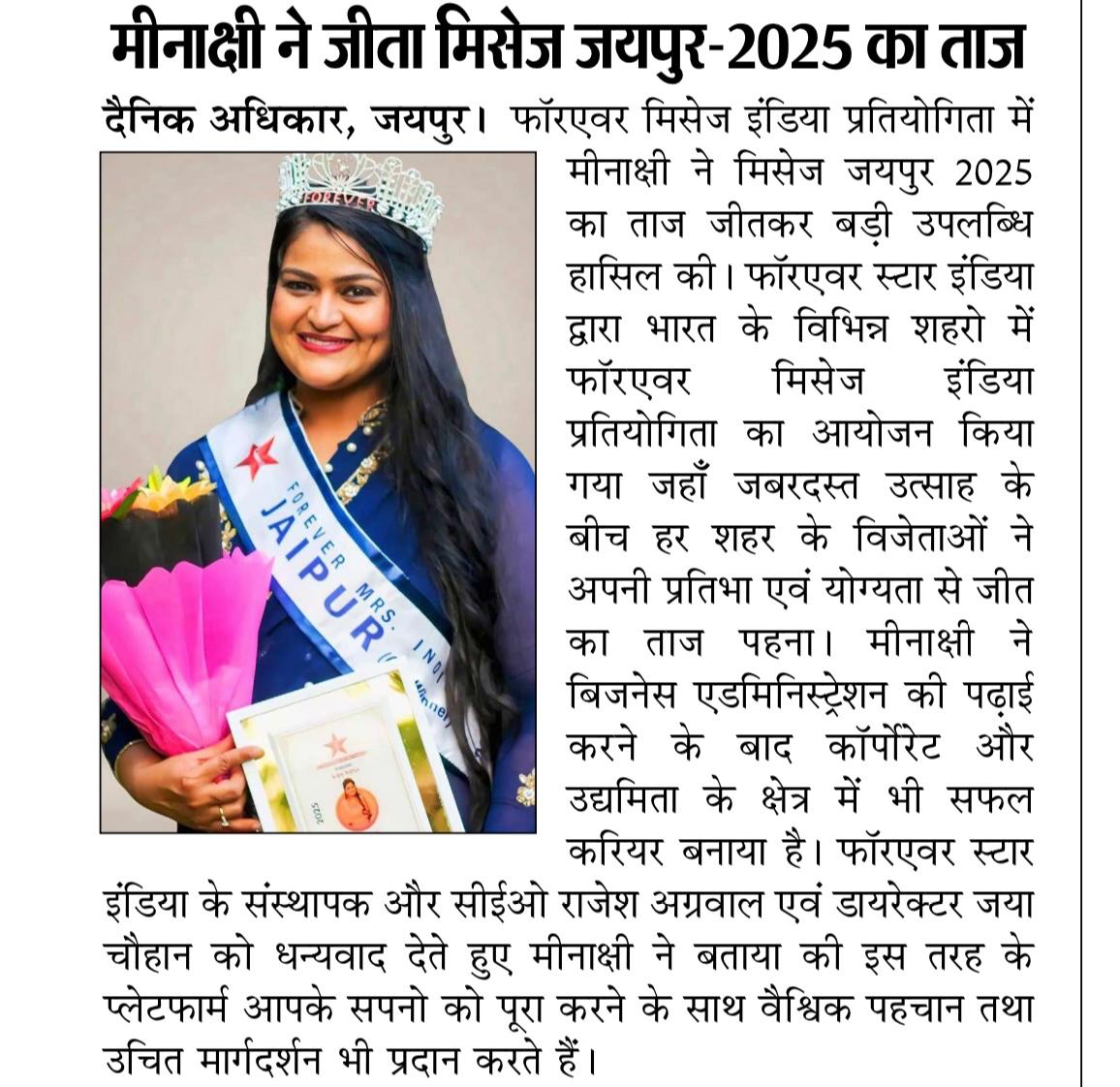 Priyanka Chaudhary takes the Miss Jaipur 2024 (1st Runner Up) Crown
