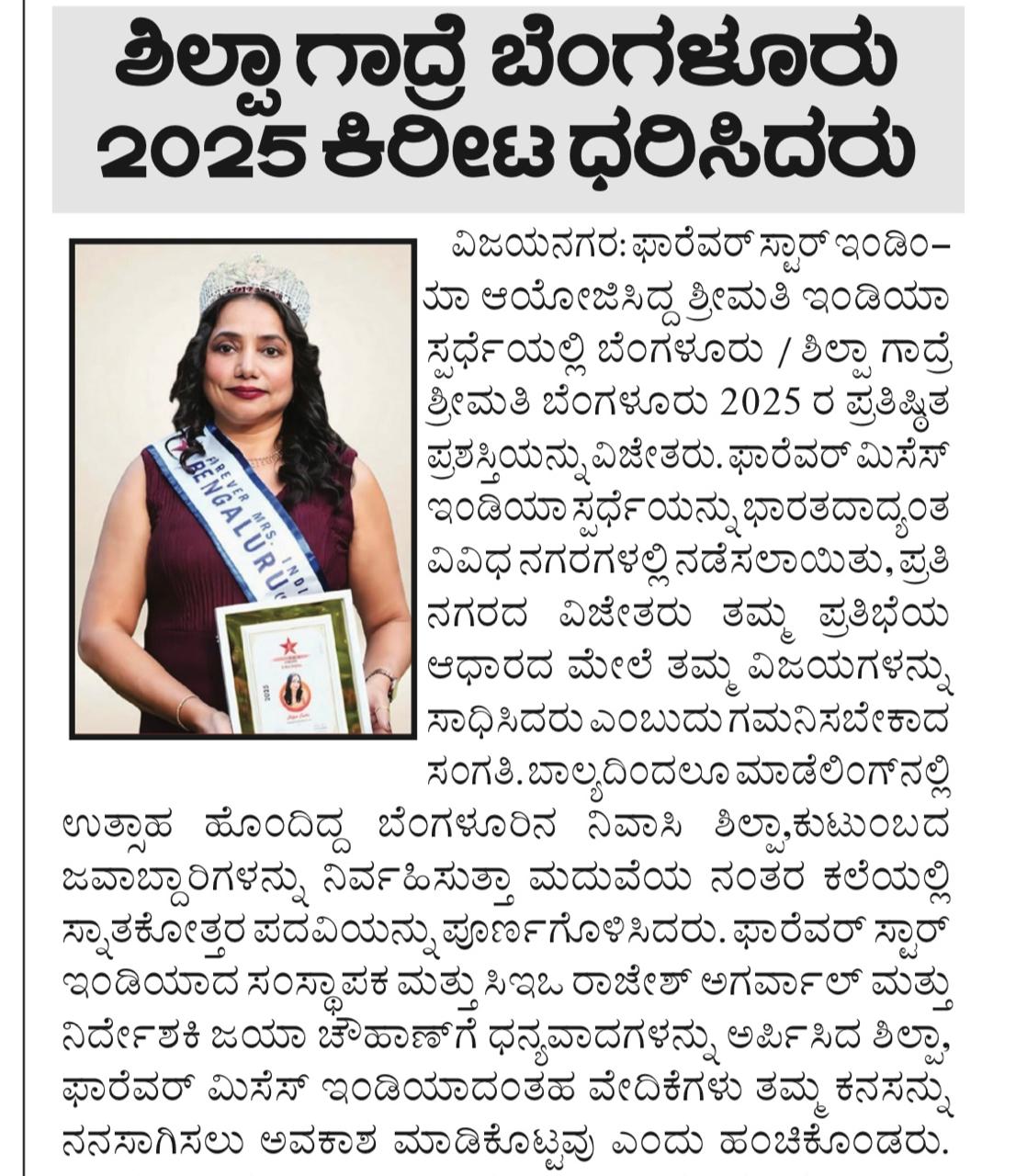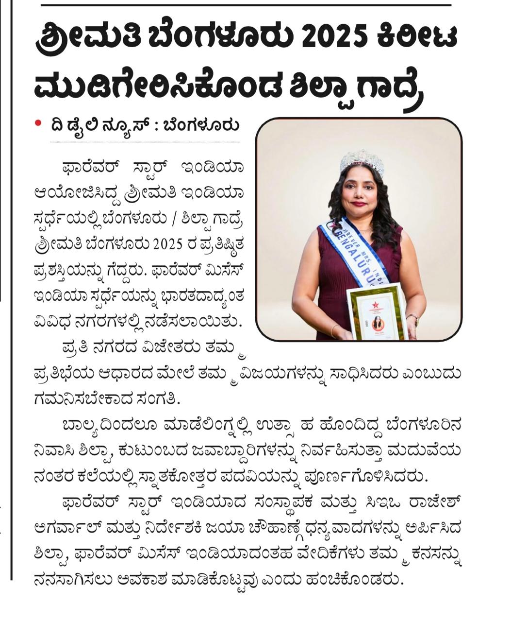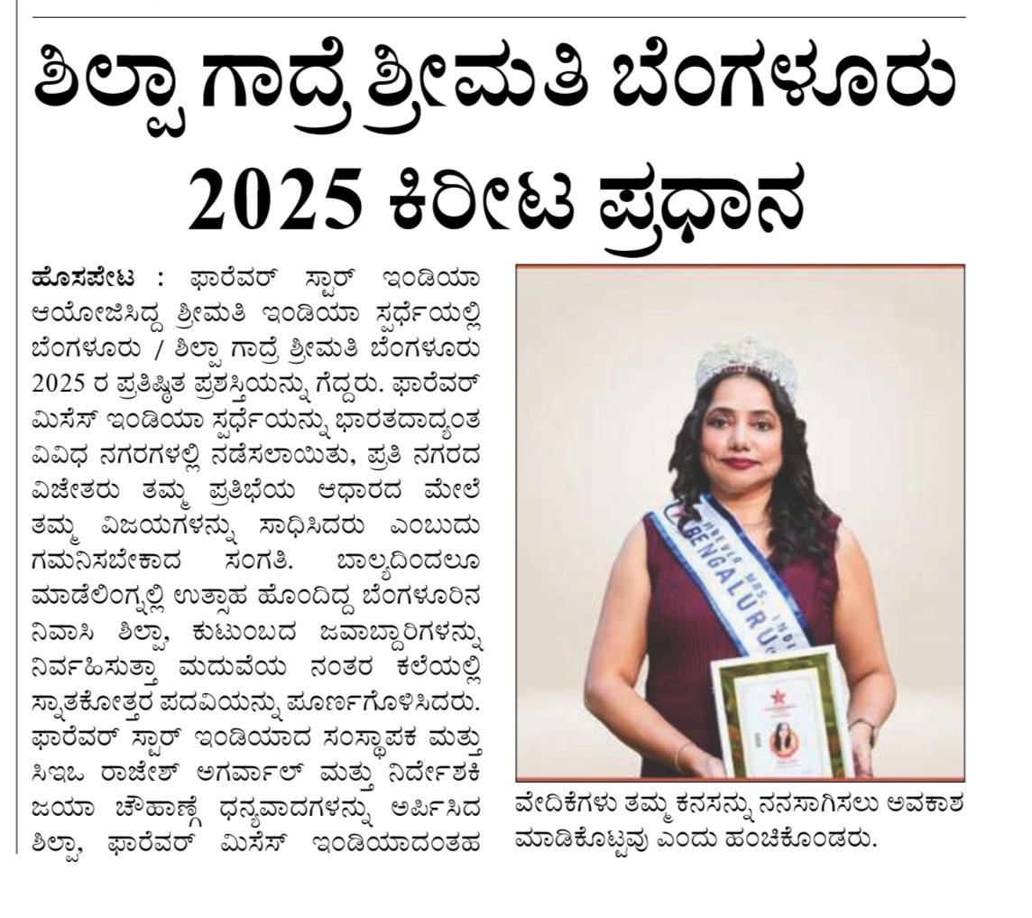 Preeti Kumari won Forever Mrs Karnataka 2024 Title