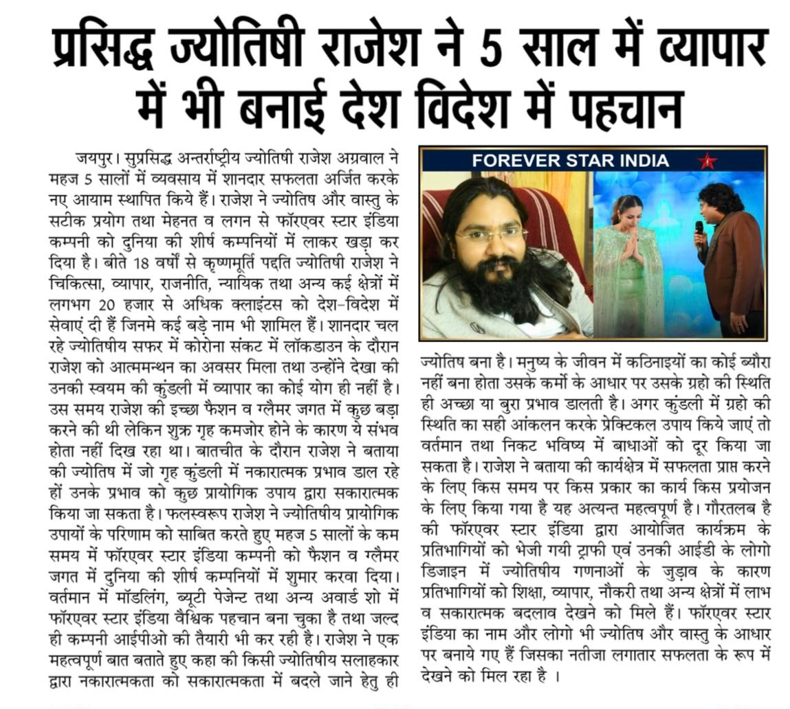 Bollywood Actor Rahul to Join Award Ceremony in Jaipur