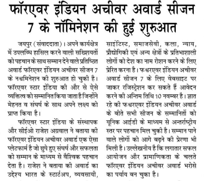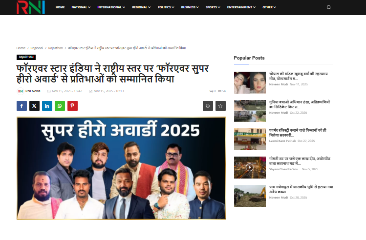 Bollywood Actor Rahul to Join Award Ceremony in Jaipur