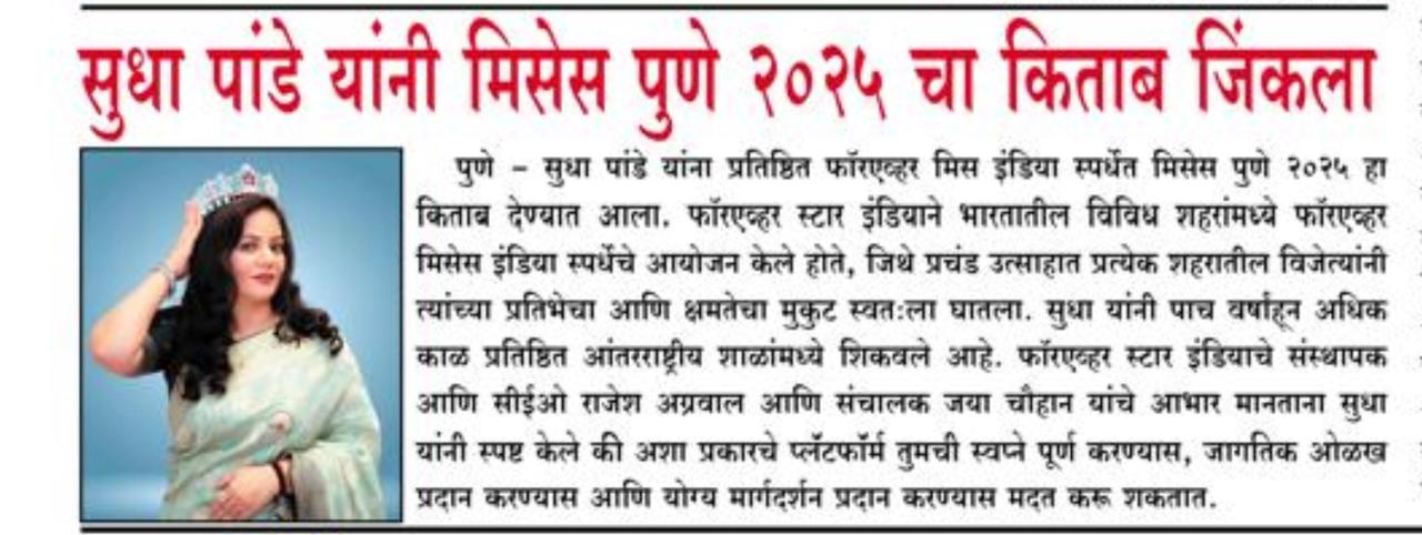 Sangeeta Kapat is the Winner of Forever Mrs Universe Telangana organized by Forever Star India