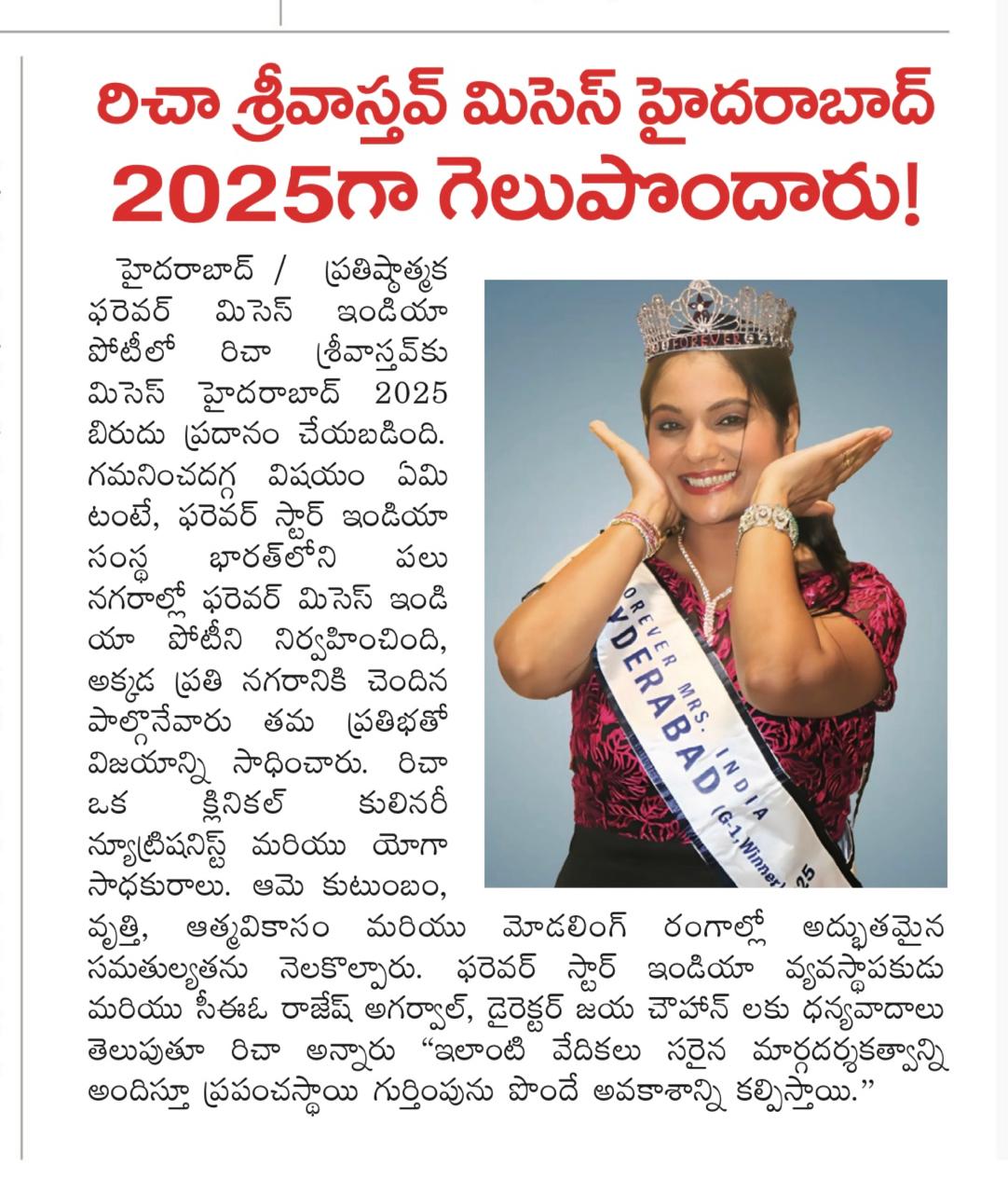Sangeeta Kapat is the Winner of Forever Mrs Universe Telangana Title