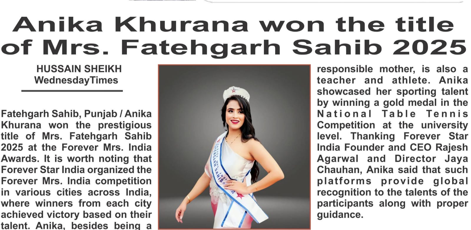 Manvika Mehra entitled as Forever Miss Haryana 2024