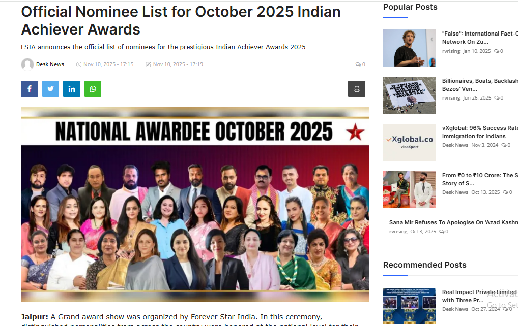 Mega Award Ceremony in Jaipur: Bhagyashree Recognizes 130+ Achievers