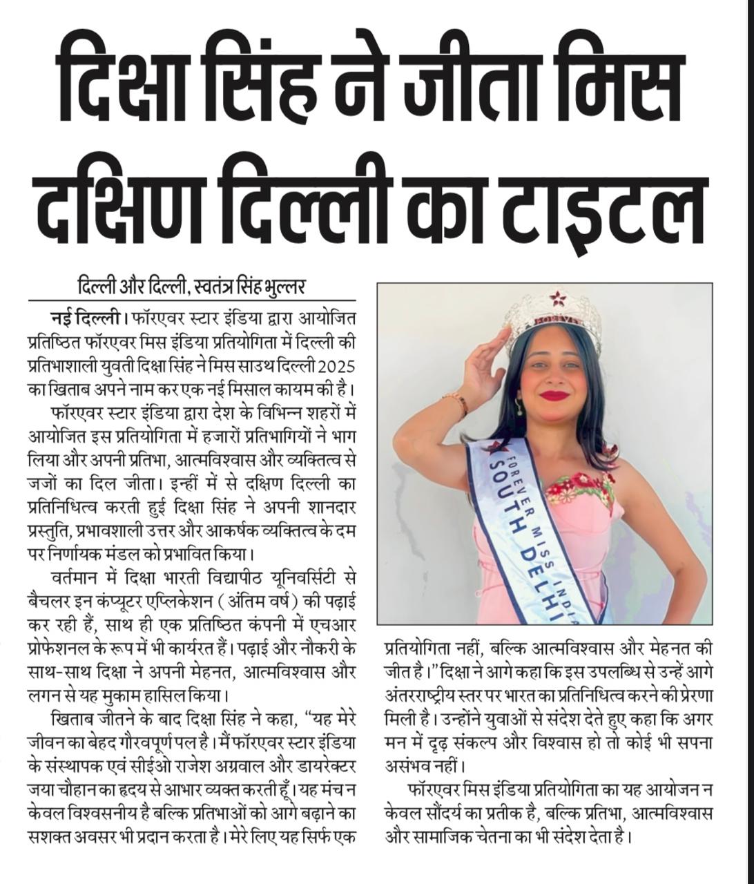 Manvika has won Miss Haryana 2024 Title in Forever Miss India 2024 Beauty Contest