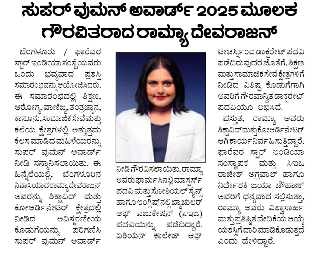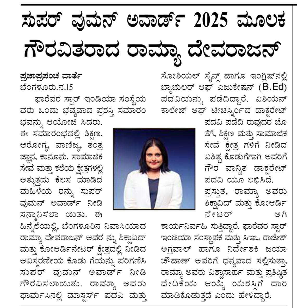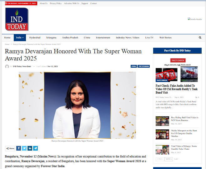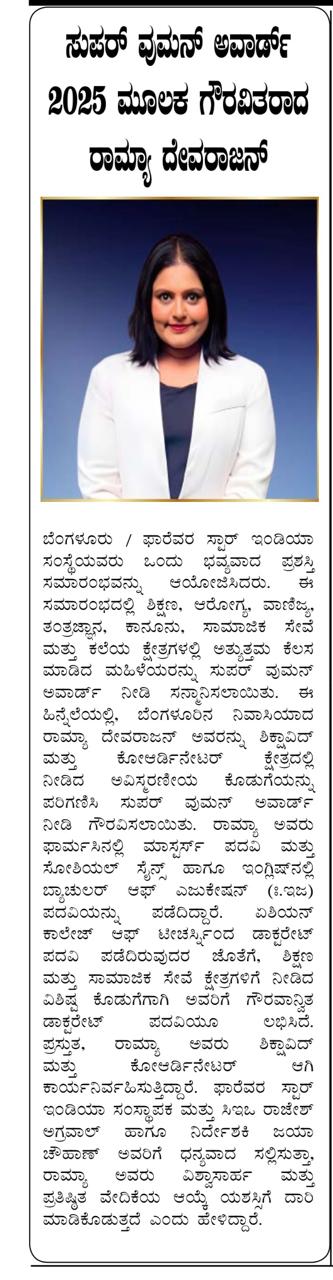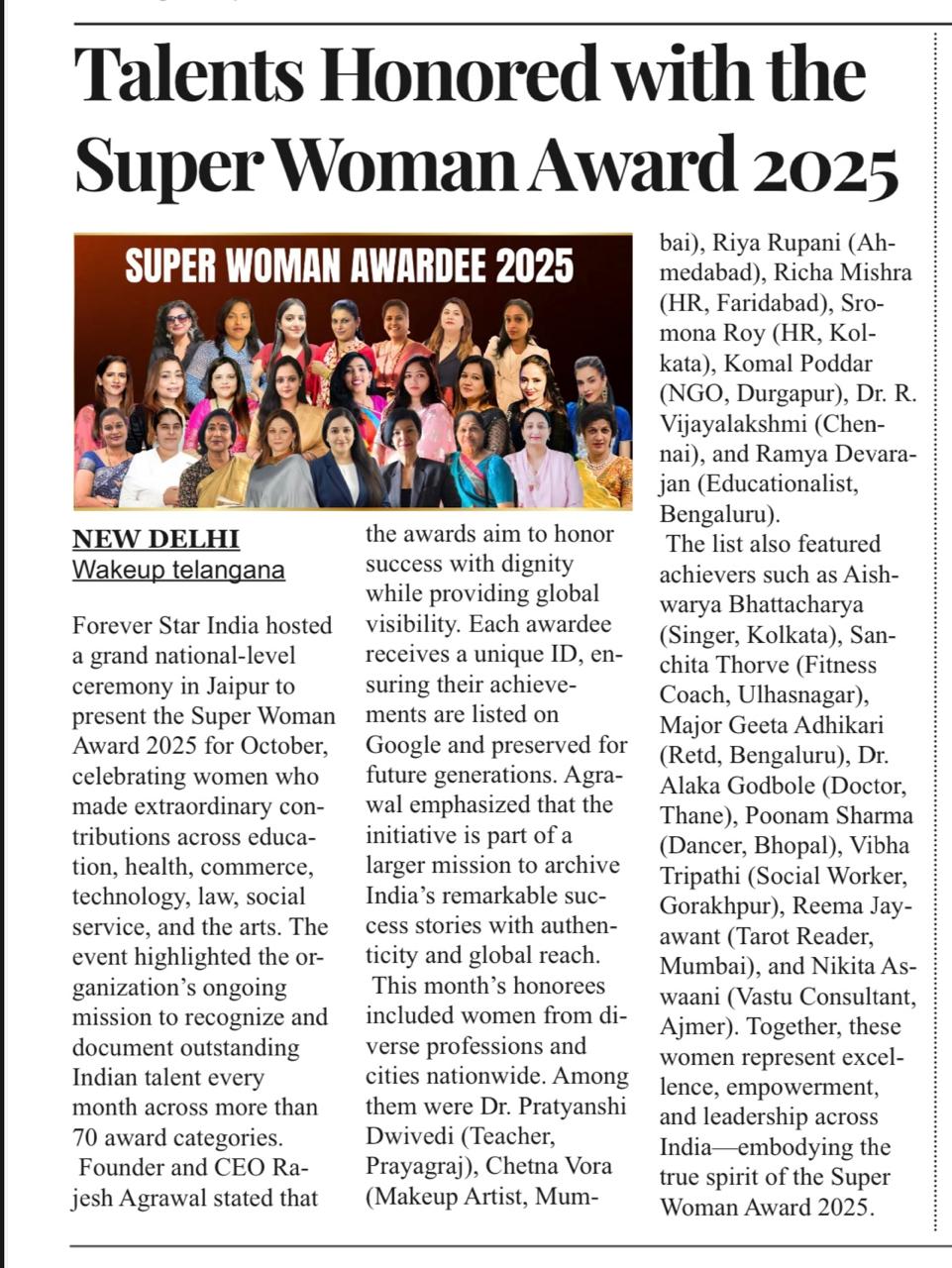 Bijli Sudha Bai awarded in "Best Makeup Artist" Category in Super Woman Awards 2024
