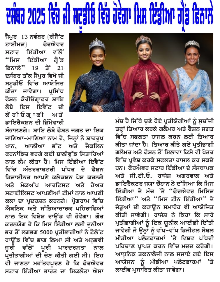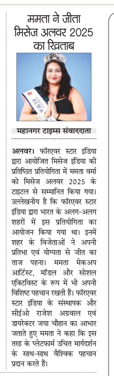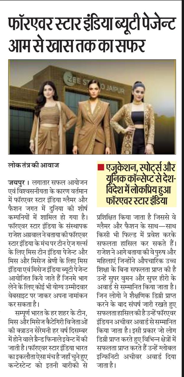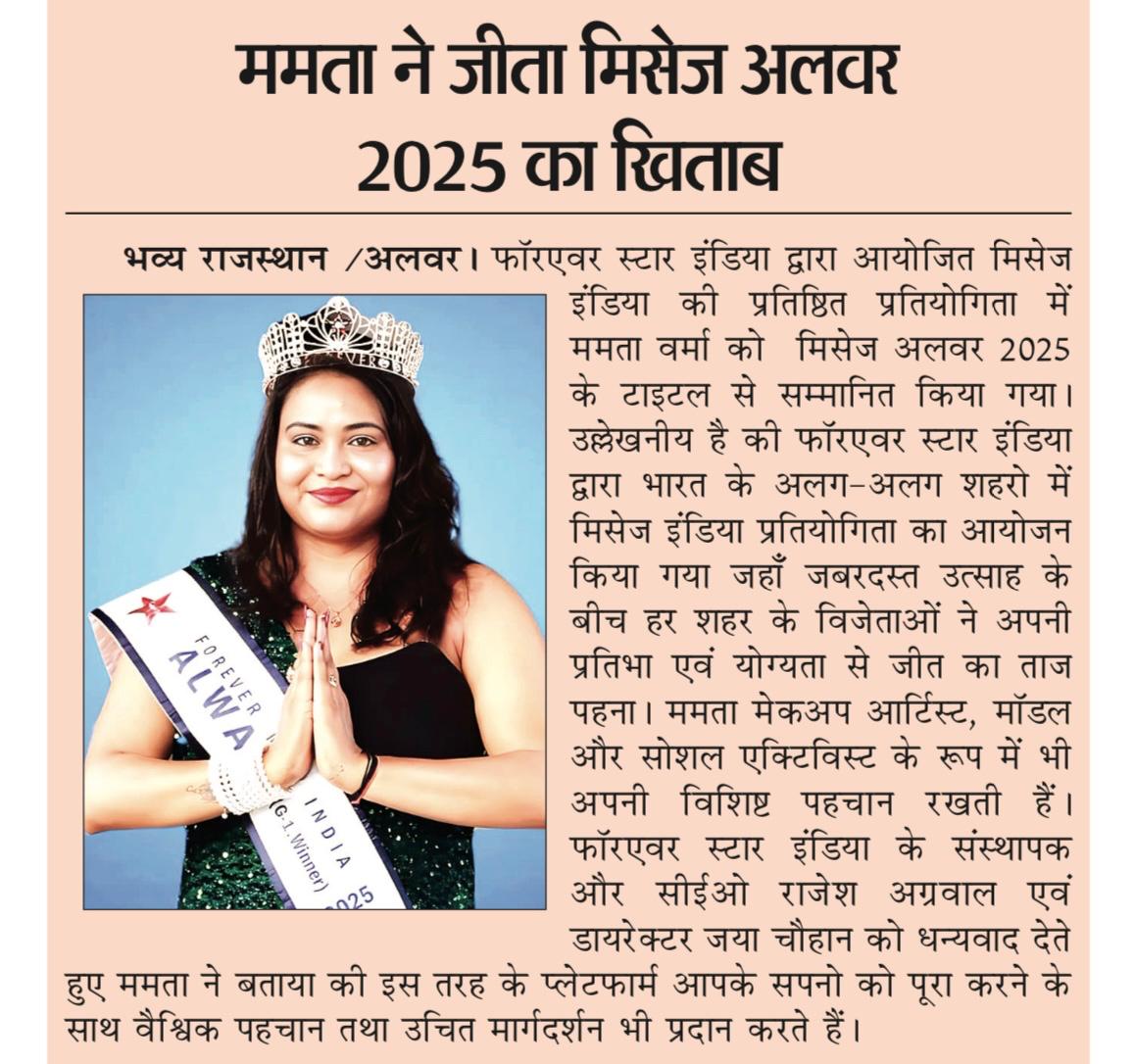 नेशनल लेवल ब्यूटी पेजेन्ट फॉरएवर मिस, मिसेज एंड टीन इंडिया 2023 सीजन 3 की स्टेट व नेशनल लेवल विनर्स का मीडिया इंटरेक्शन सेशन