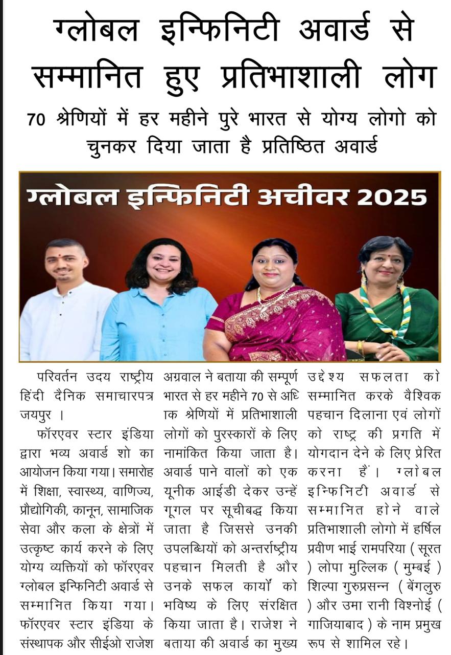 Honored for Great Contributon in "Health and Fitness" Category - Shivendra Pachauri