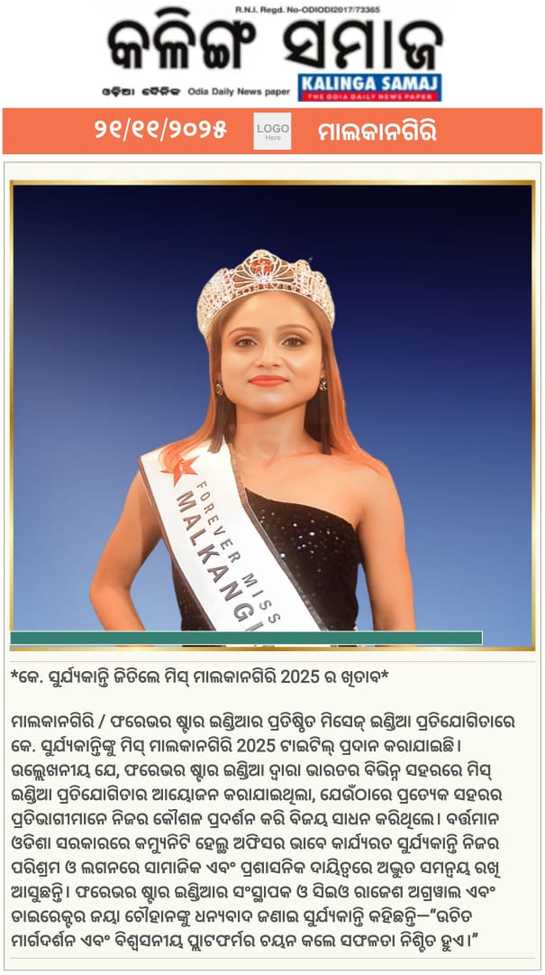 Miss Teen India 2024 Runner Up Sonakshi Mohapatra