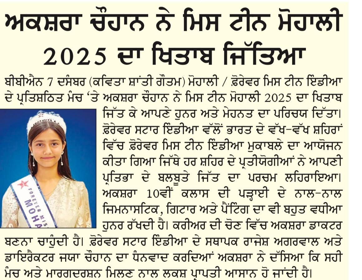 Sonakshi Mohapatra has beed crowned as Runner Up of Forever Miss Teen India 2024