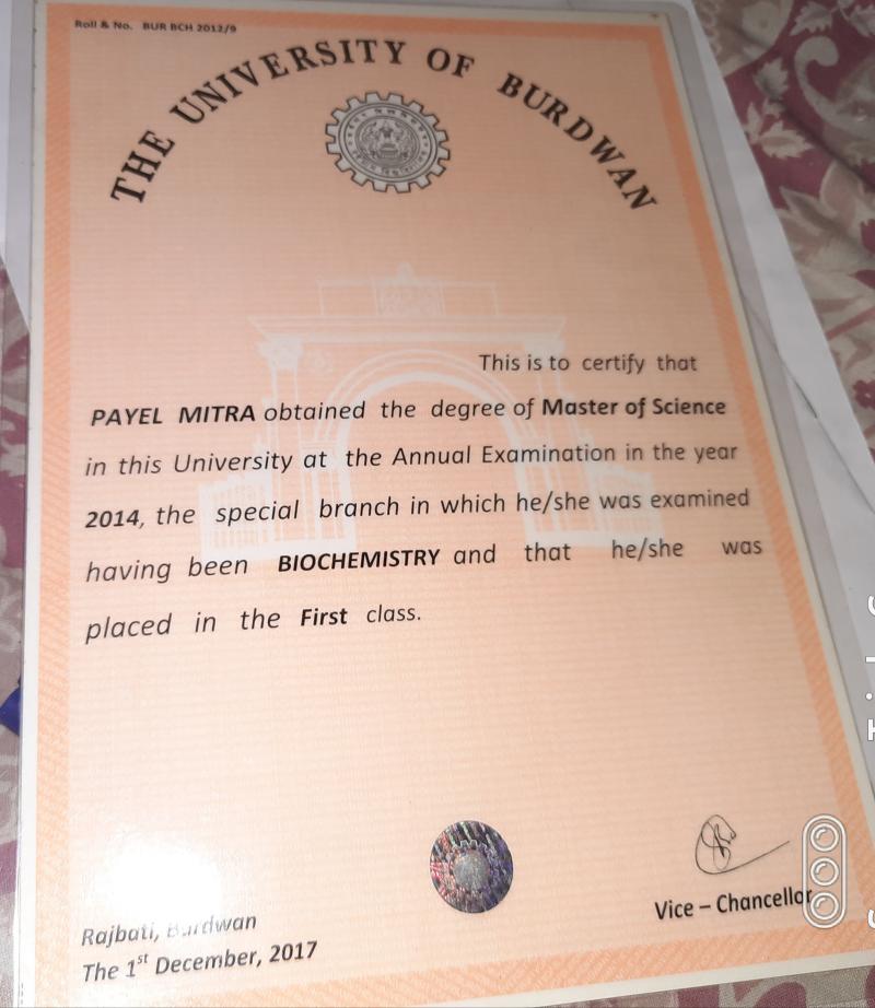 B.sc(Chemistry(Hons), M.Sc(Biochemistry),B.ed