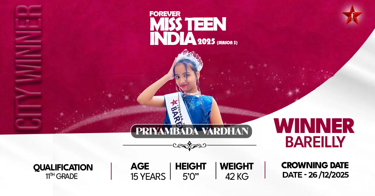 From an early age, Priyambada showed a deep interest in creativity, arts, and self-expression. While continuing her academic journey, she discovered her passion for modeling and pageantry platforms that allow her to express confidence and individuality. Her dedication, discipline, and belief in herself led her to earn the prestigious title of Forever Miss Teen Bareilly 2025. This milestone marks the beginning of a promising journey fueled by determination and vision.